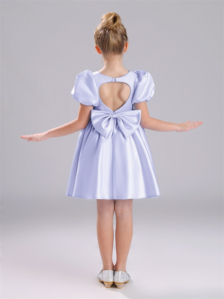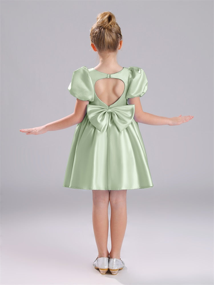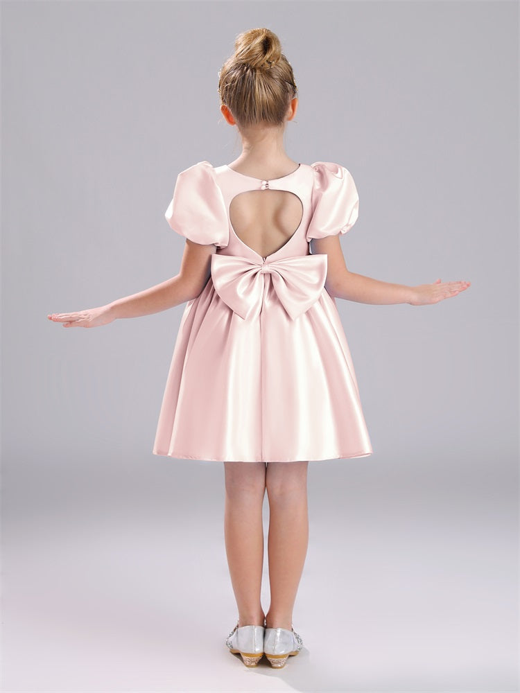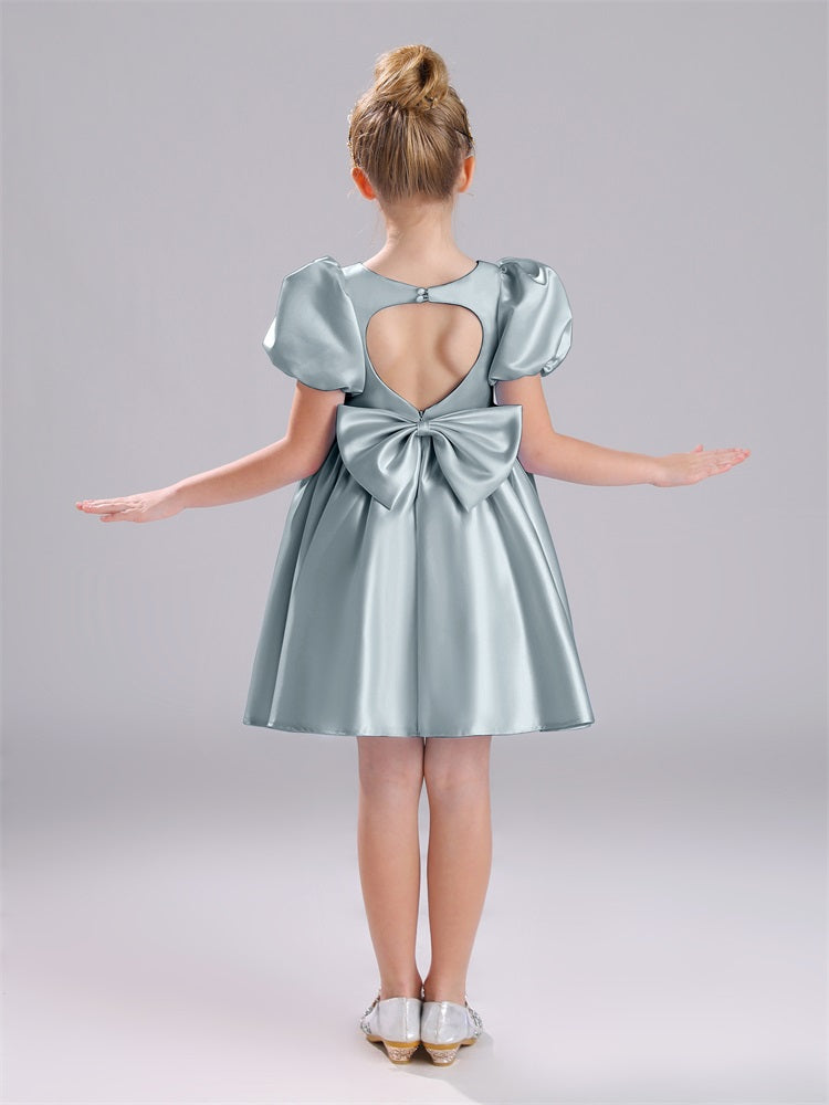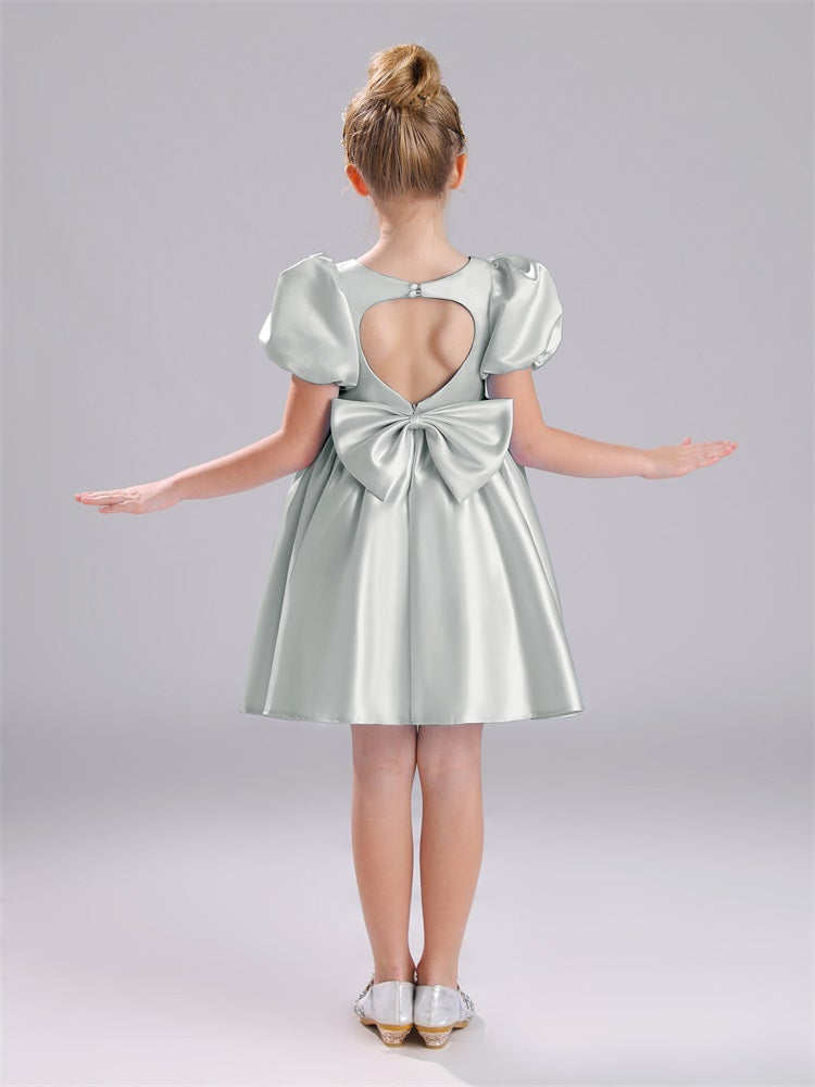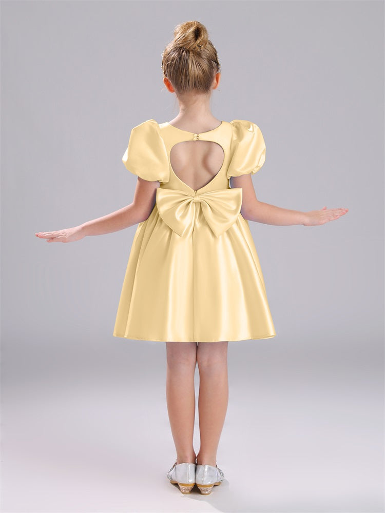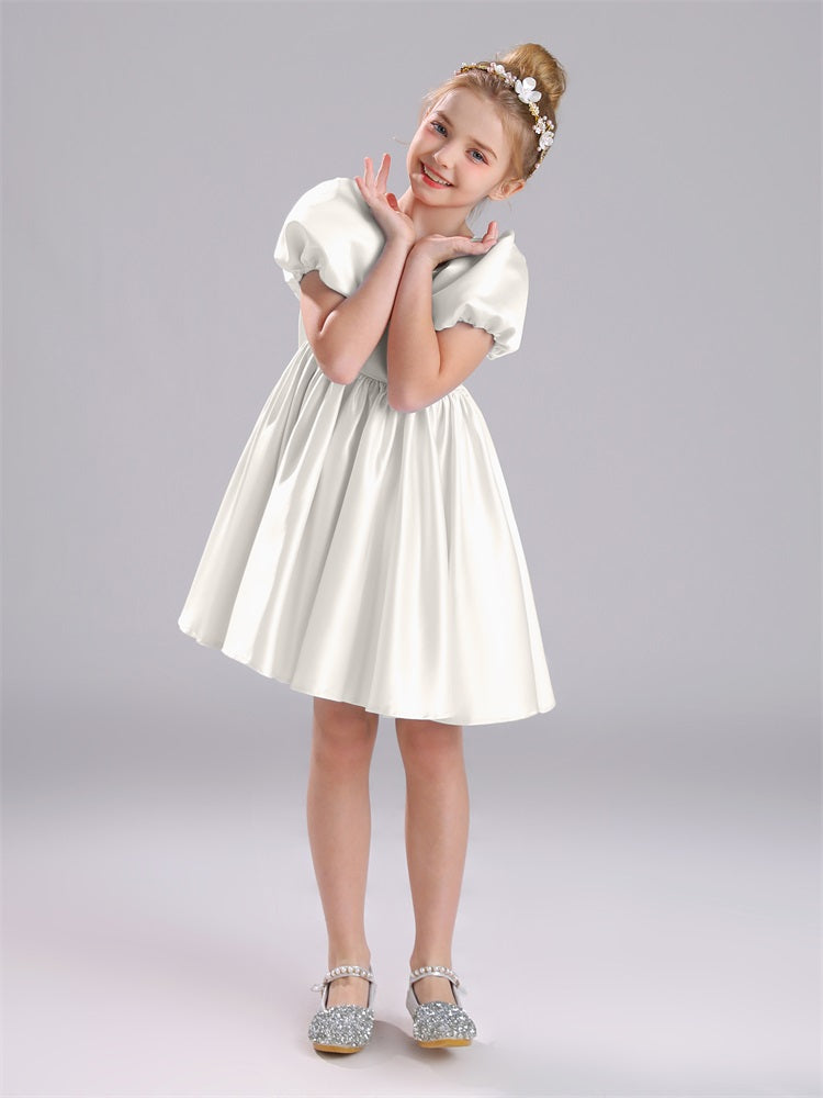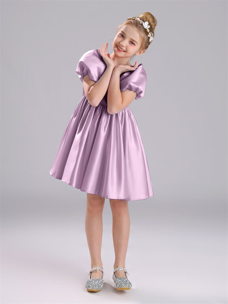 Viereckiger Ausschnitt Satin Ärmel Kurz Kleid für Mädchen