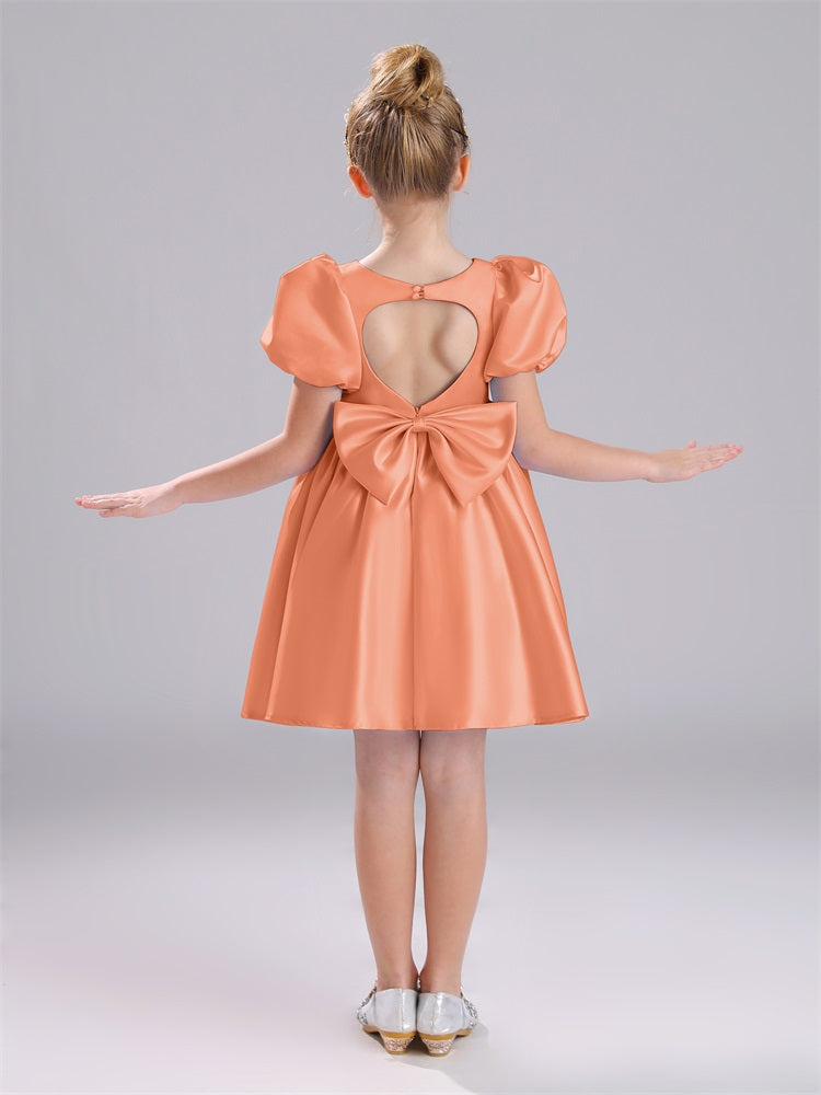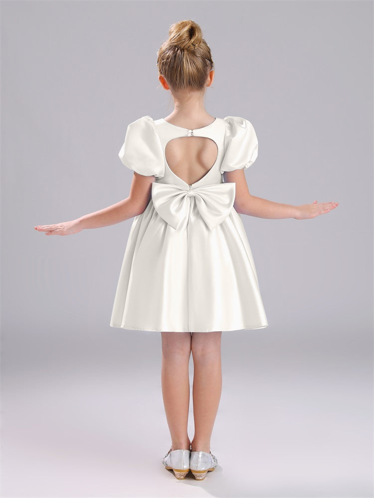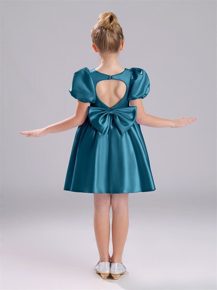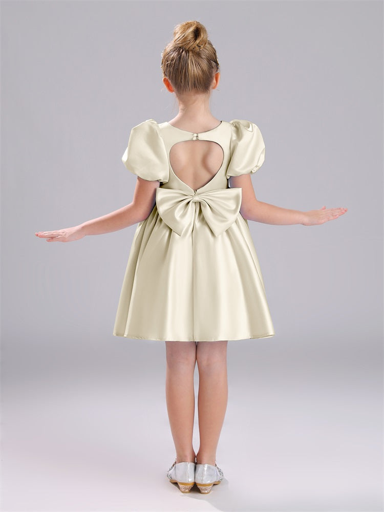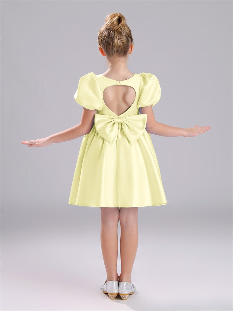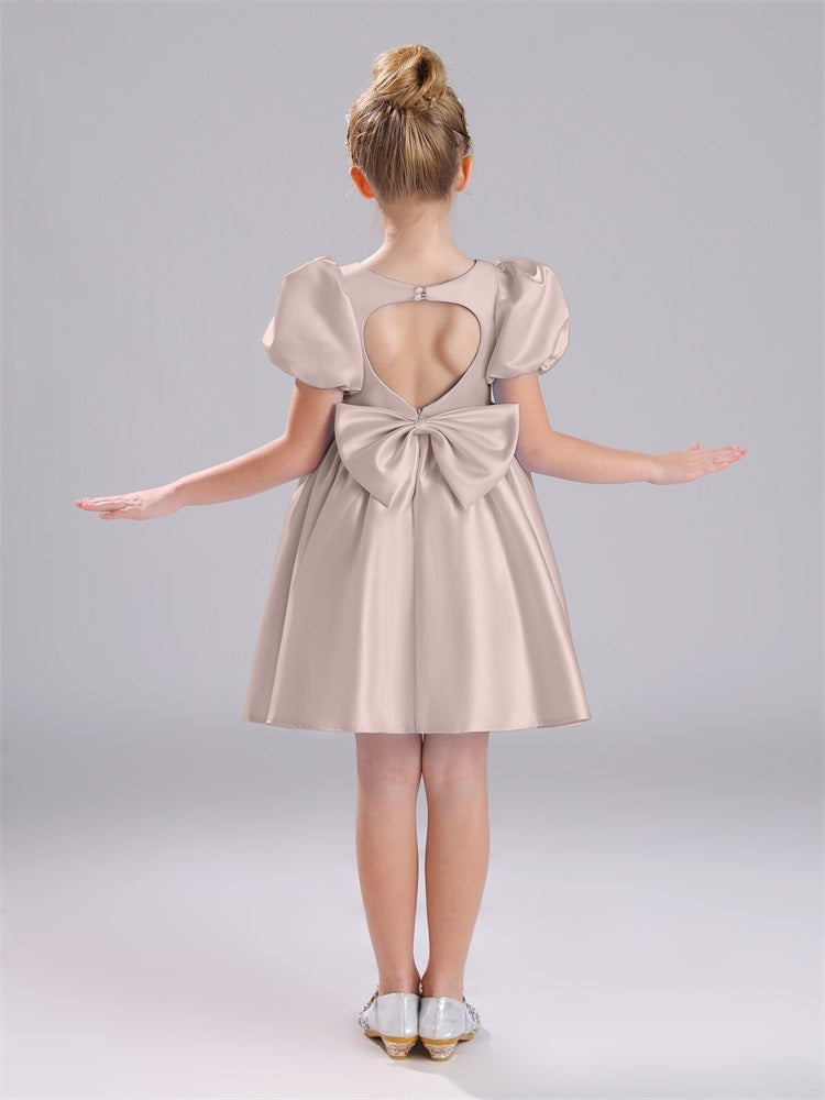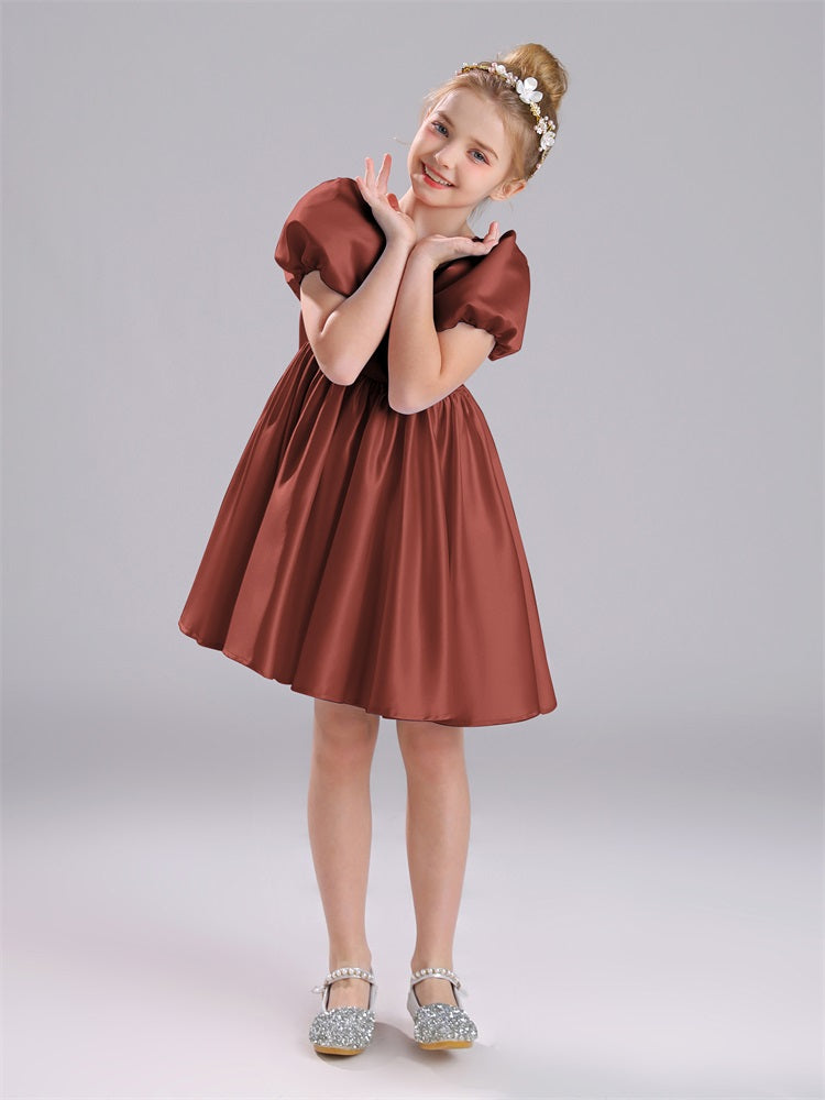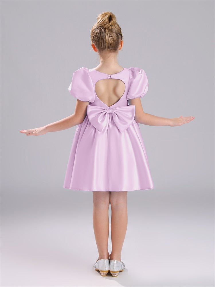 Viereckiger Ausschnitt Satin Ärmel Kurz Kleid für Mädchen