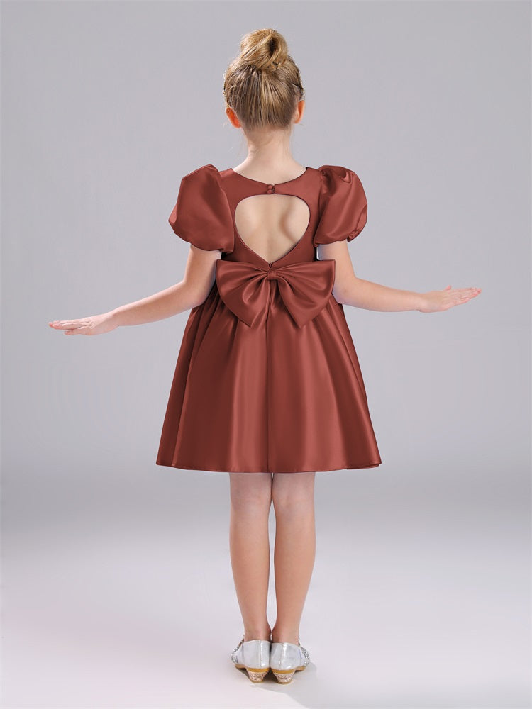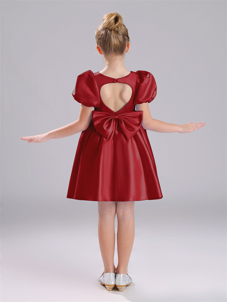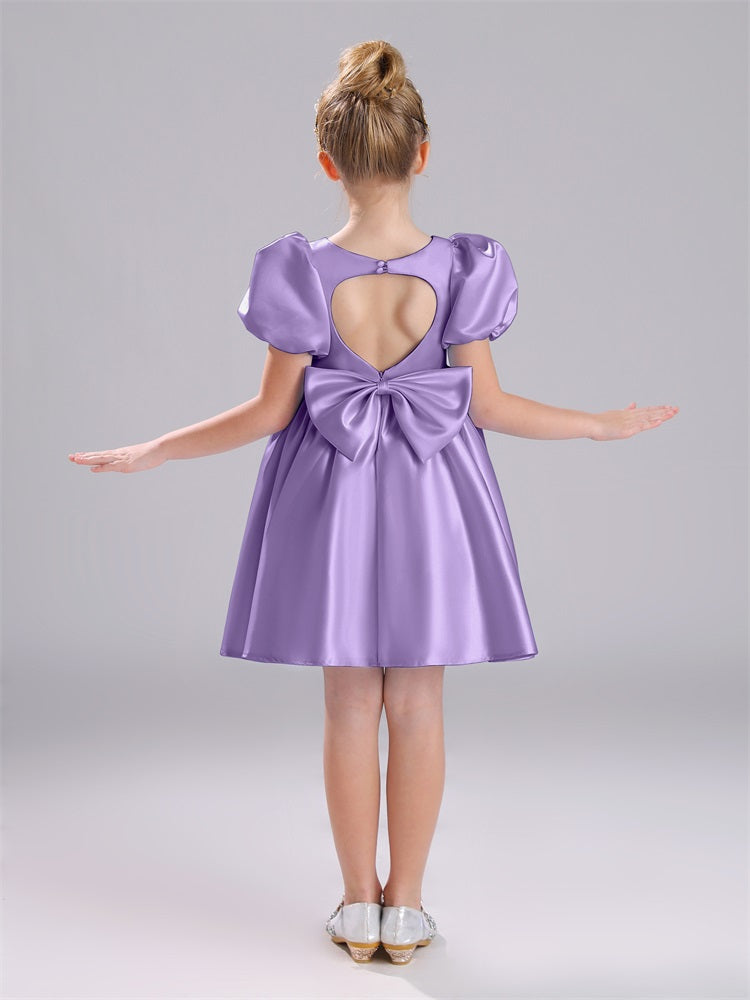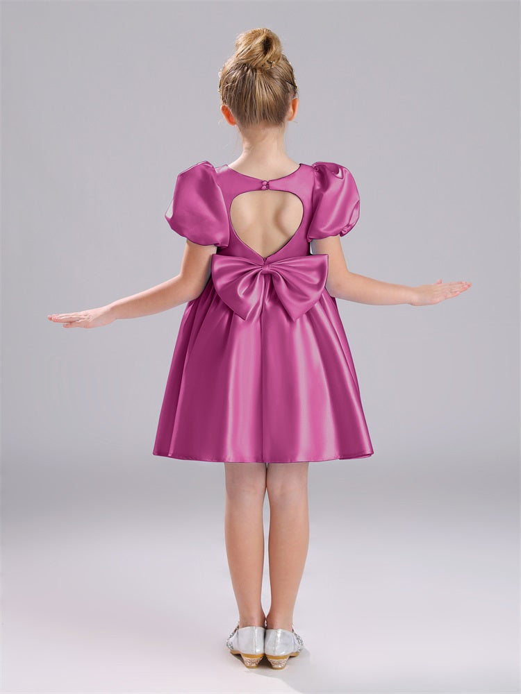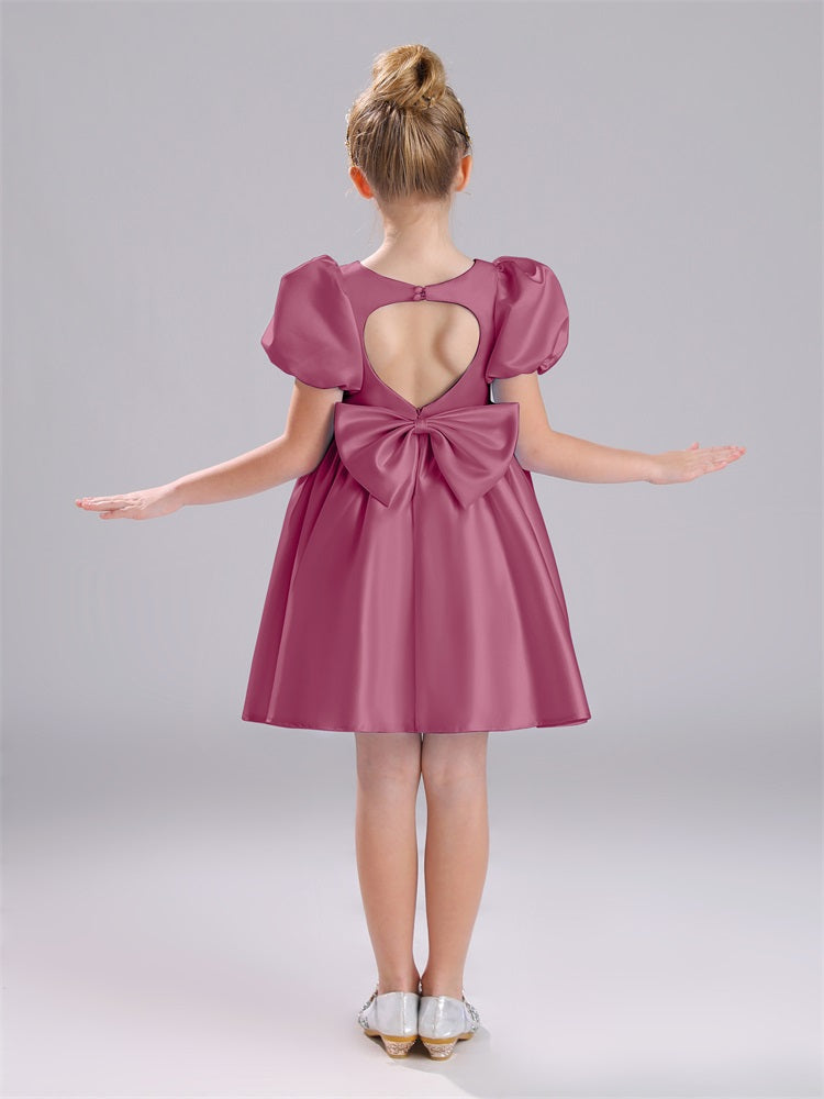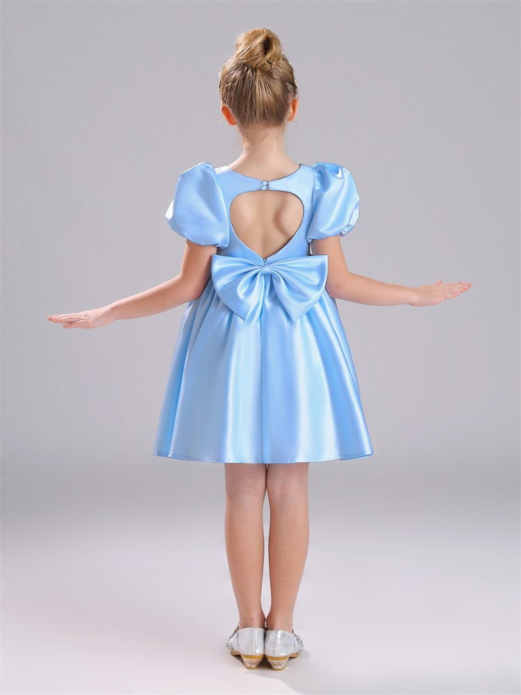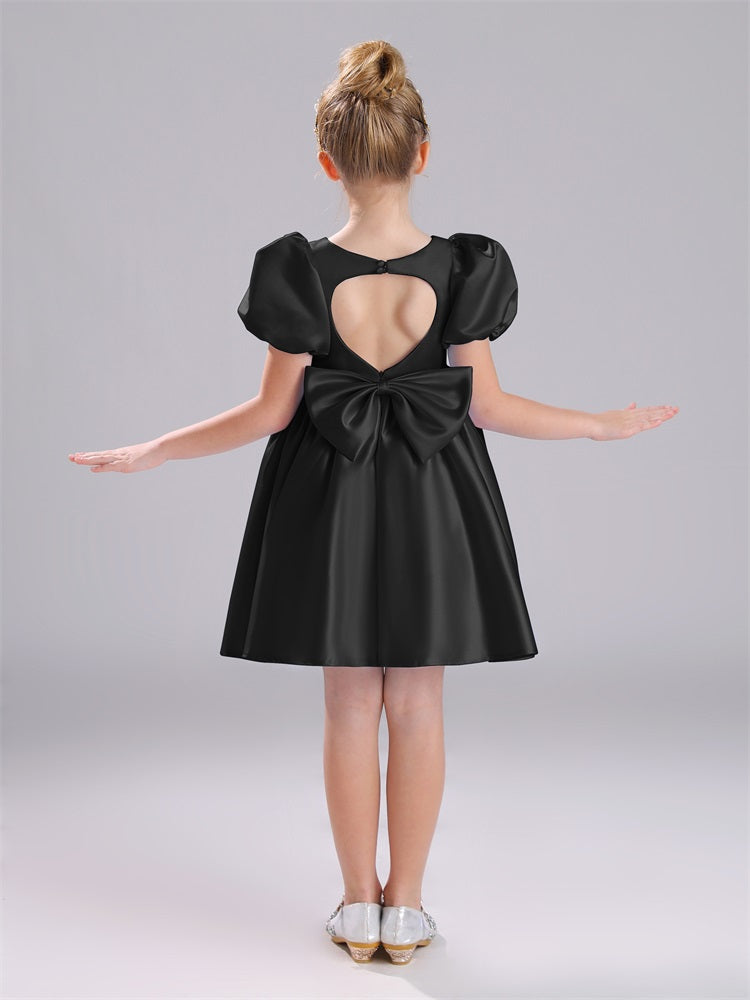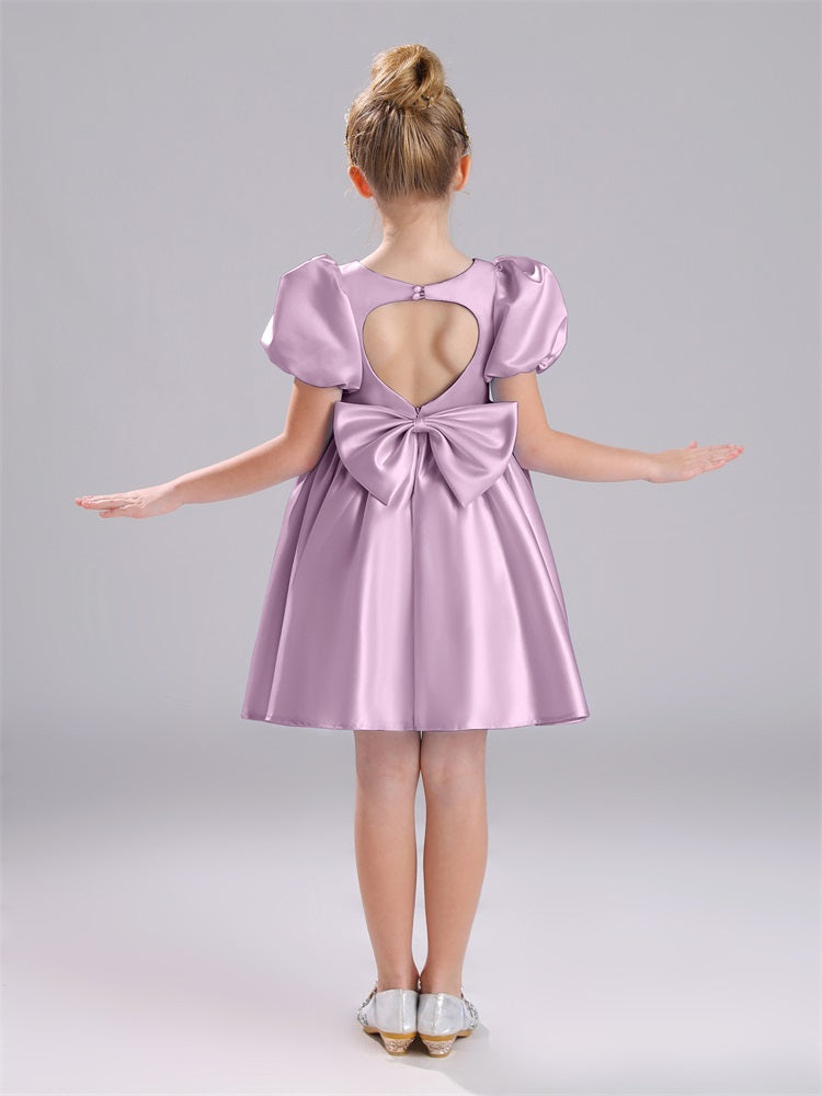Viereckiger Ausschnitt Satin Ärmel Kurz Kleid für Mädchen