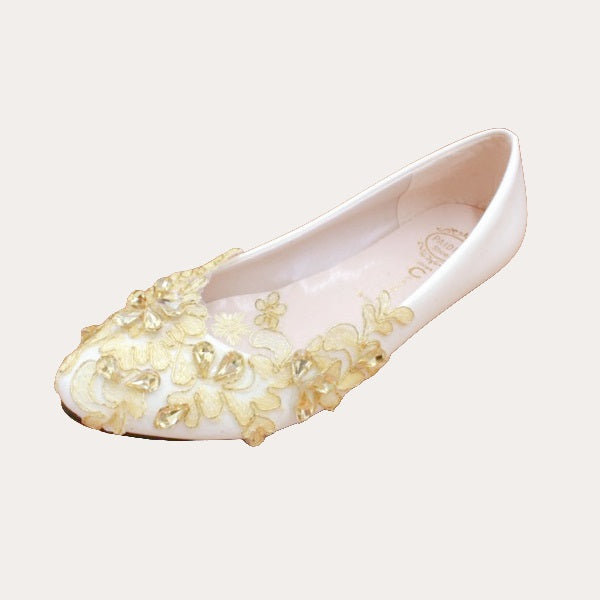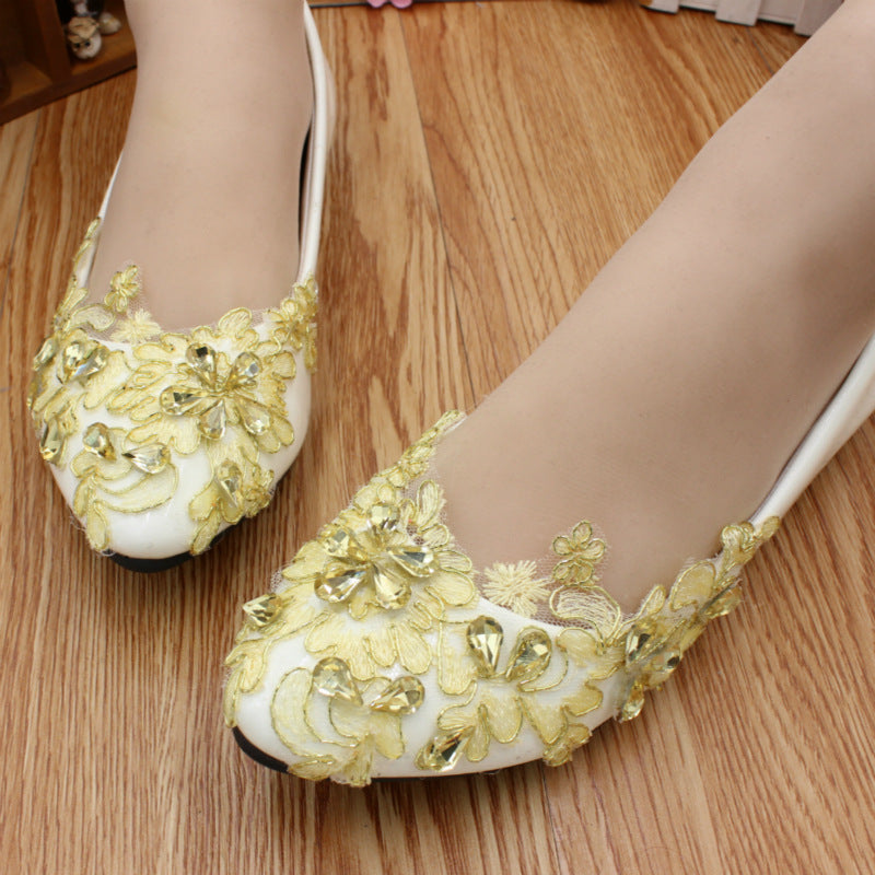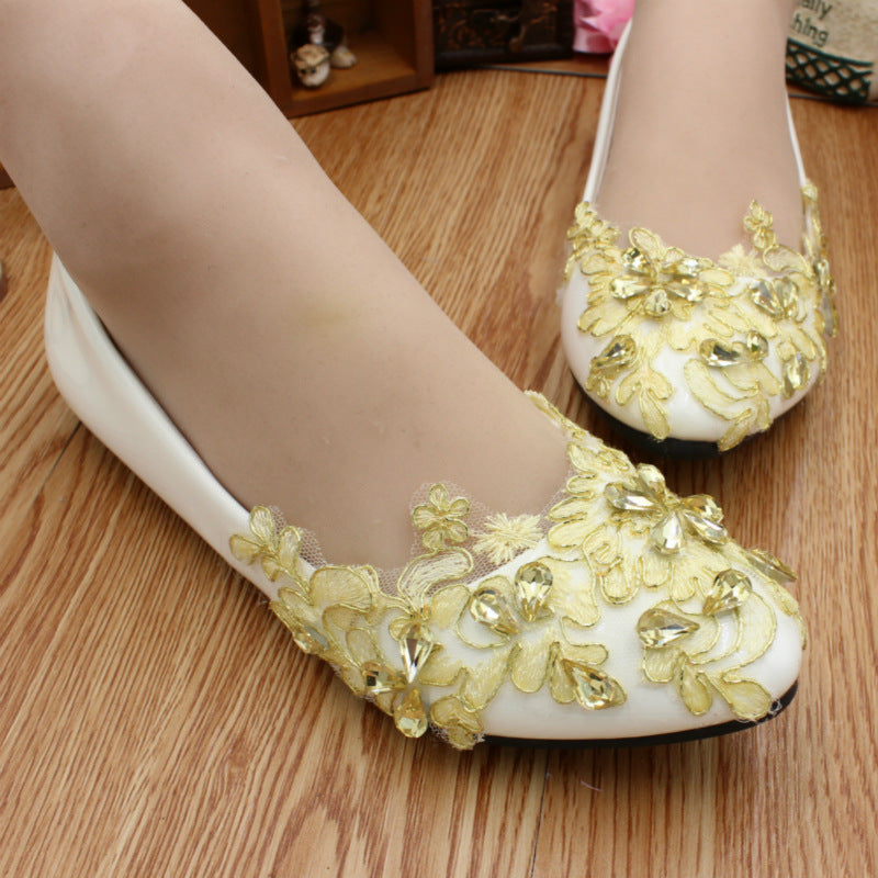Vintage Gelb Diamanten Stickerei Blume Rebe Hochzeitschuhe