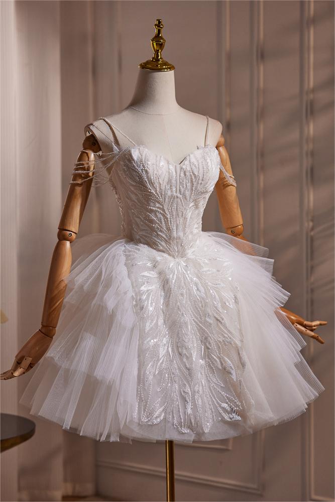 Weiß Spaghetti-Träger Kurzes Geburtstag Party Ballkleid