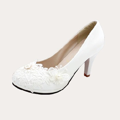 Diese wunderschönen Hochzeitsschuhe verfügen über elegante Spitze und zarte Perlen, die mit einem süßen Schmetterlingsdetail verziert sind. Mit den praktischen Riemchen bieten sie sowohl Stil als auch Komfort für Ihren besonderen Tag. Perfekt für jede Braut, die sich an ihrem Hochzeitstag wie eine Prinzessin fühlen möchte.