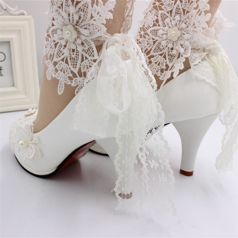 Wunderschöne Spitze Riemchen Perle Schmetterling Hochzeitsschuhe