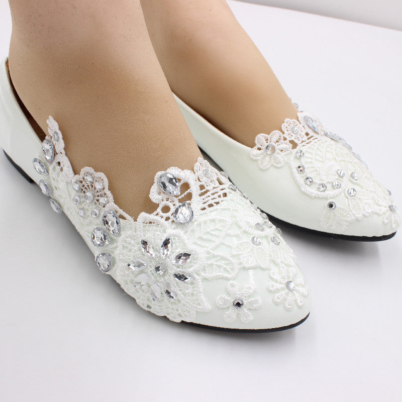 Wunderschöne Teardrop Diamant verschönert Spitze Blume Hochzeit Schuhe