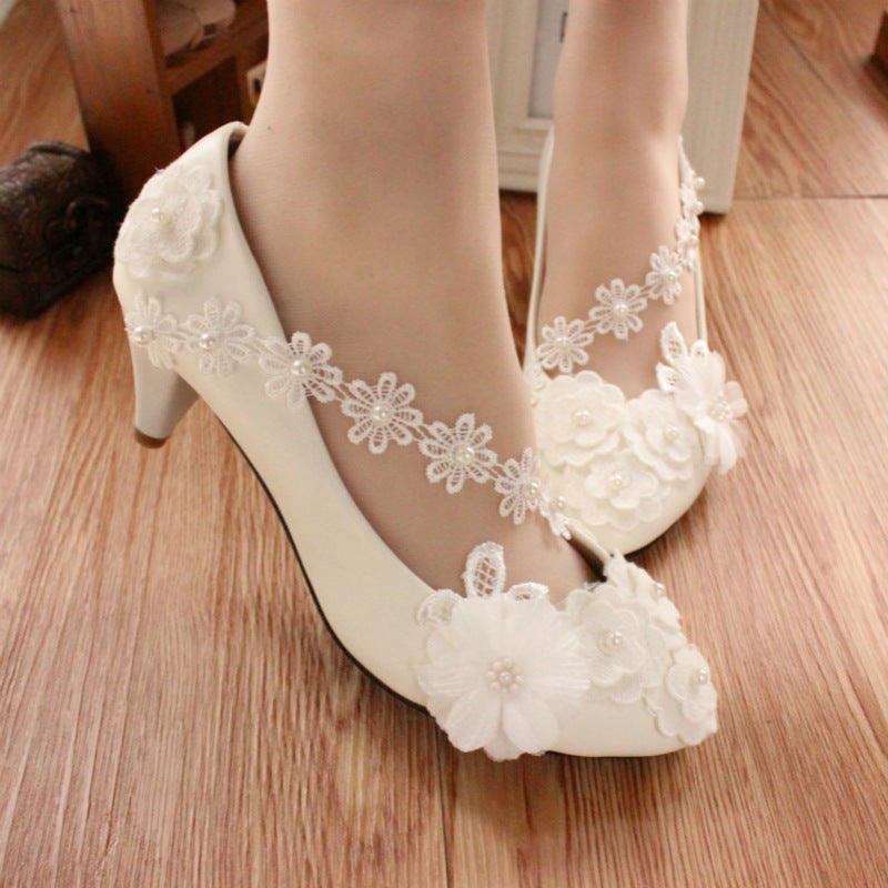 Zarte Chiffon Spitze Blume Lace Up Hochzeit Schuhe