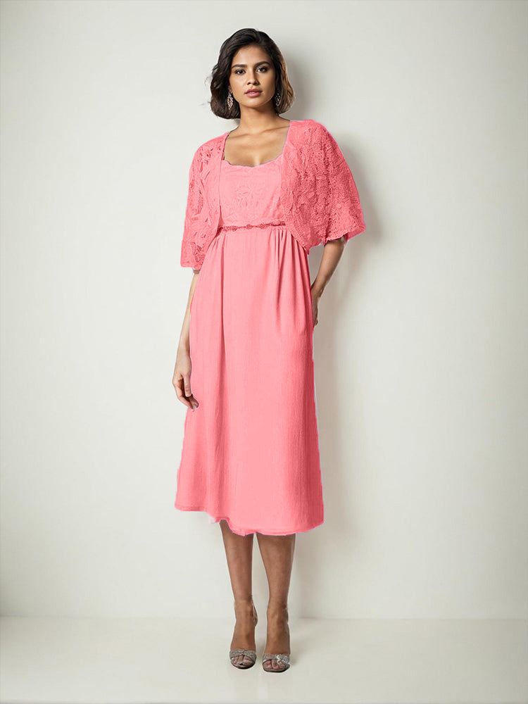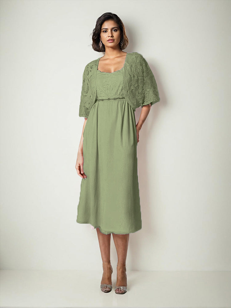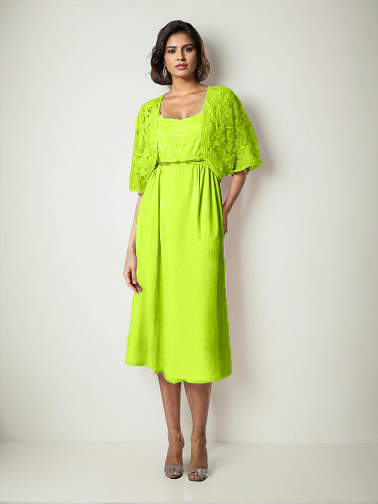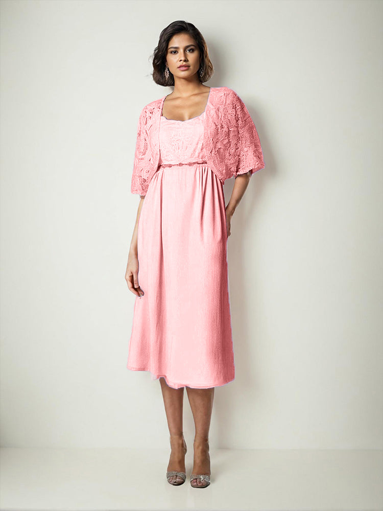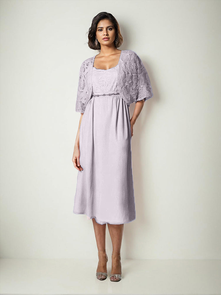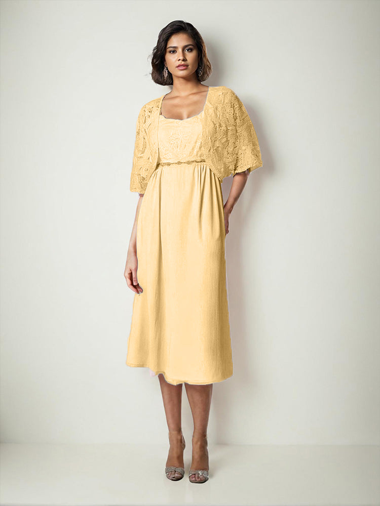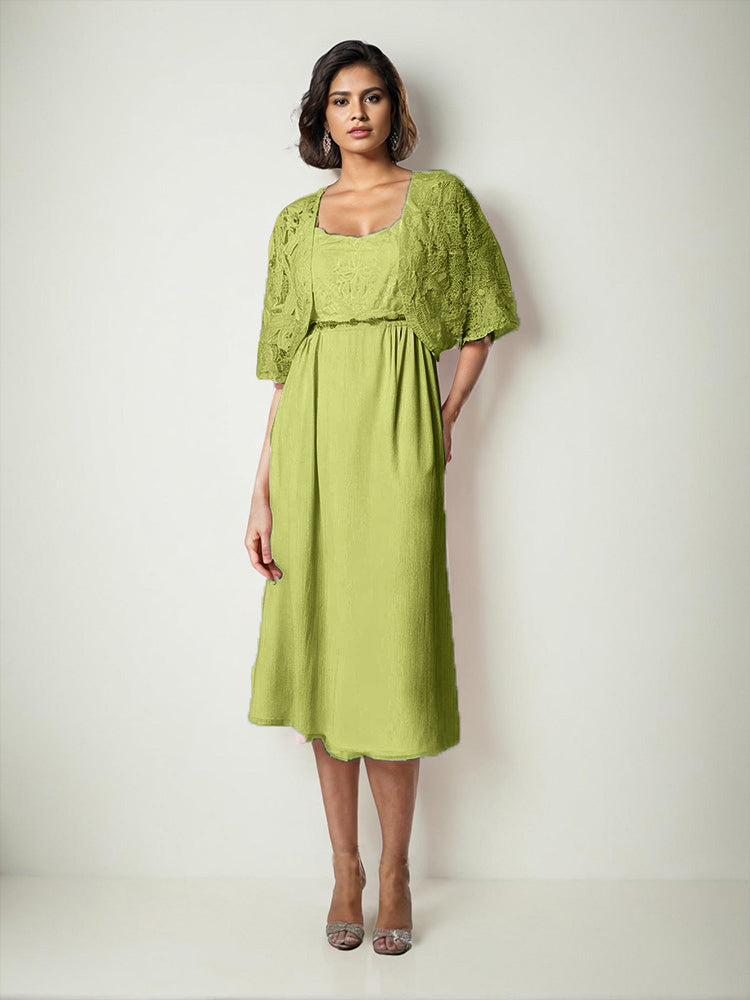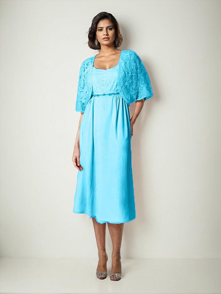 Zwei Stücke Tee Länge Spitze oben Mutter der Braut Kleid Set