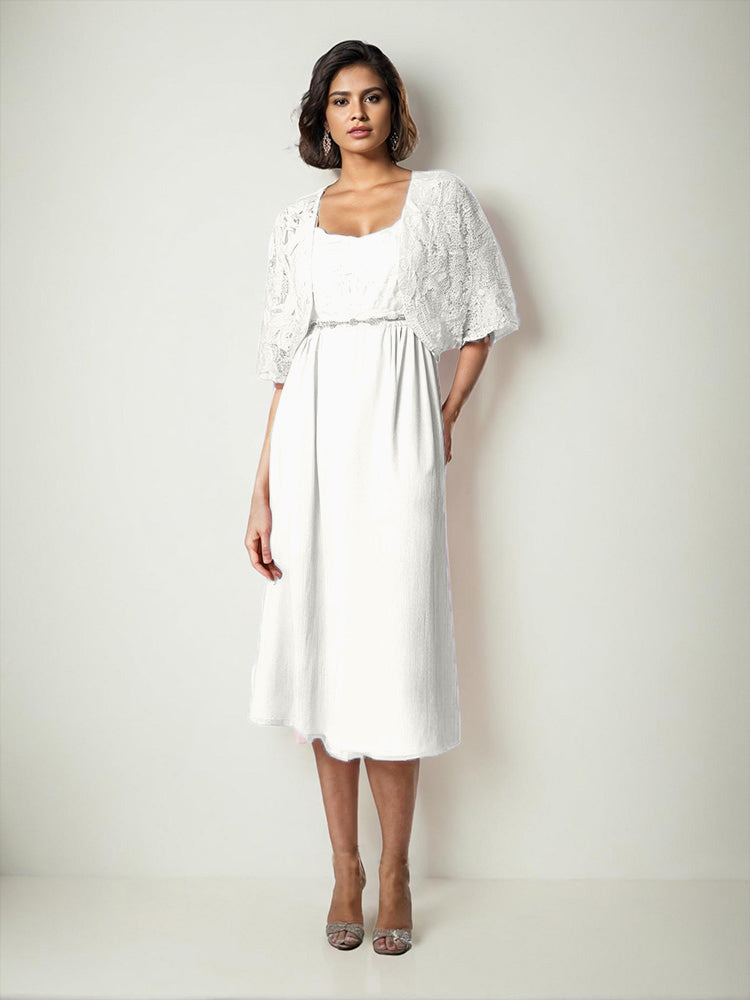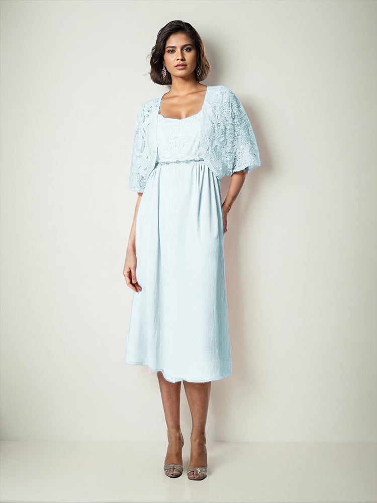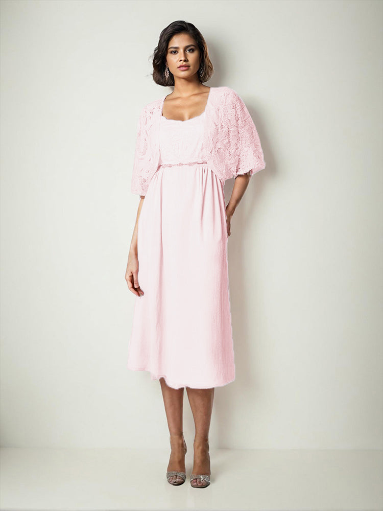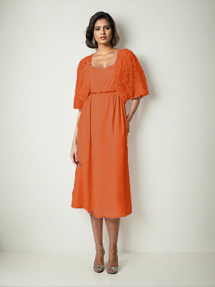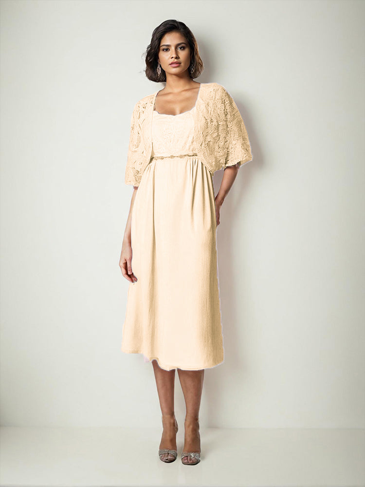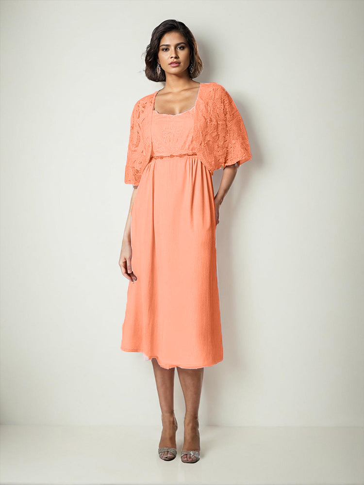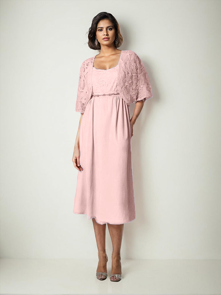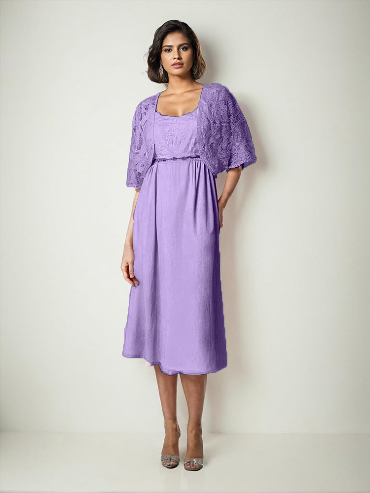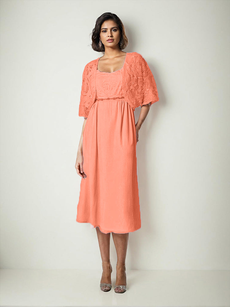 Zwei Stücke Tee Länge Spitze oben Mutter der Braut Kleid Set