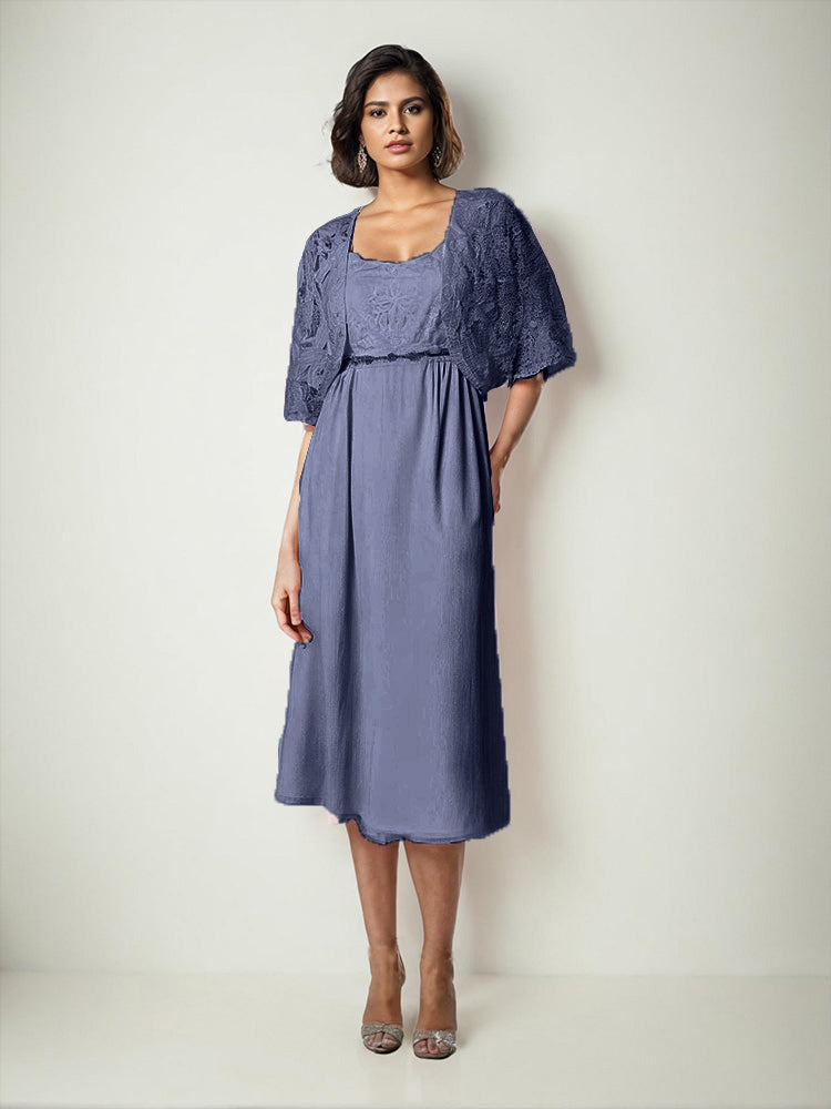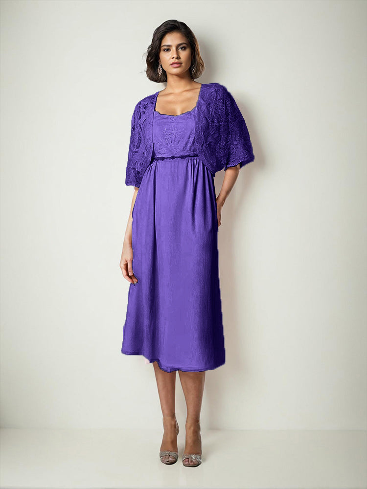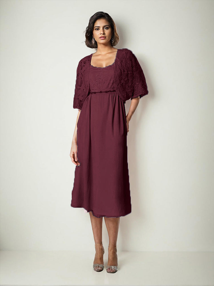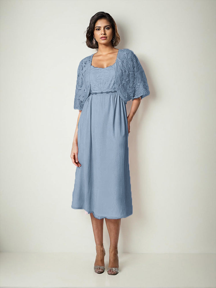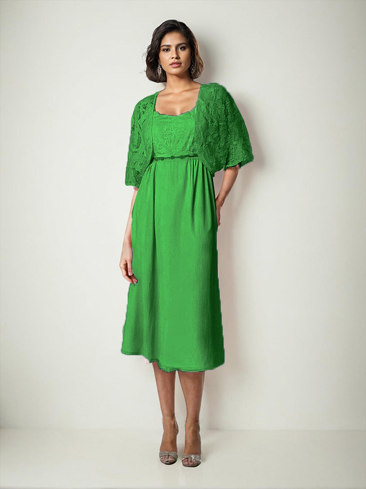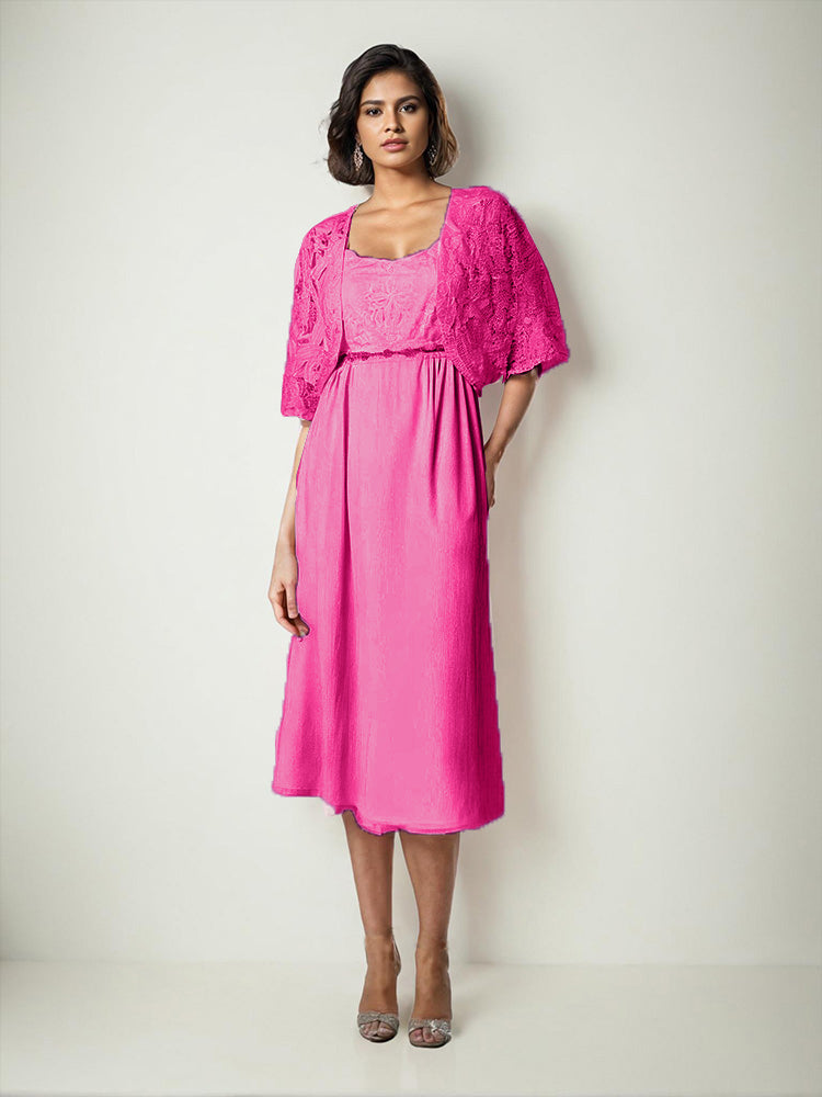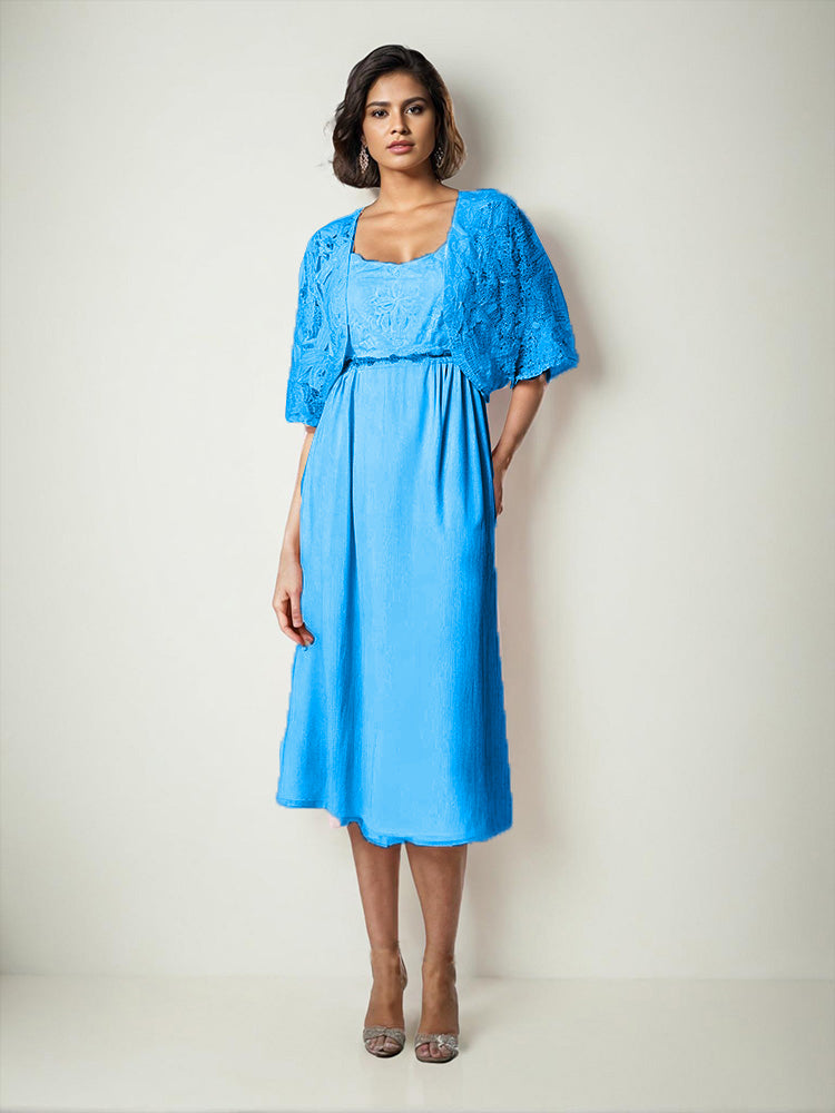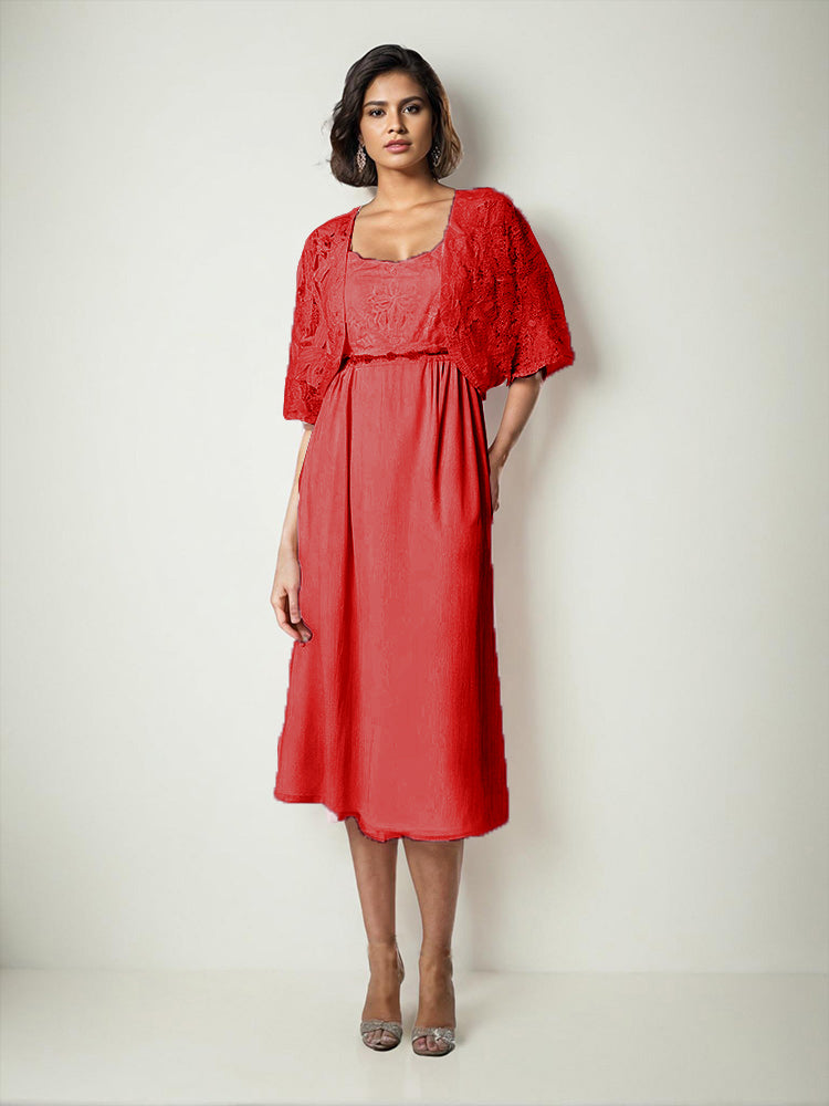 Zwei Stücke Tee Länge Spitze oben Mutter der Braut Kleid Set