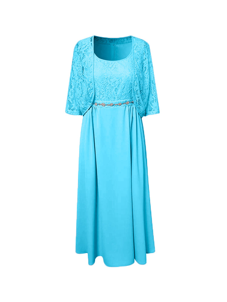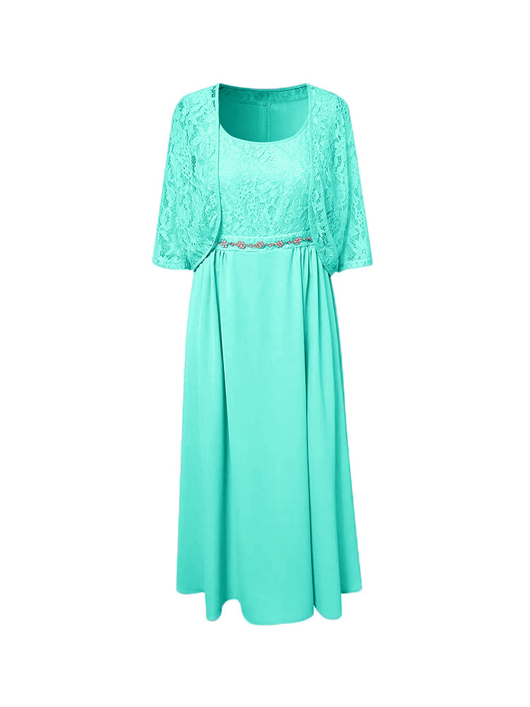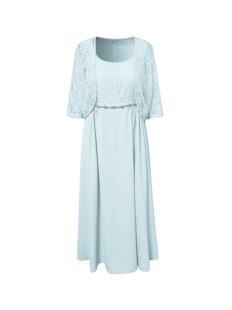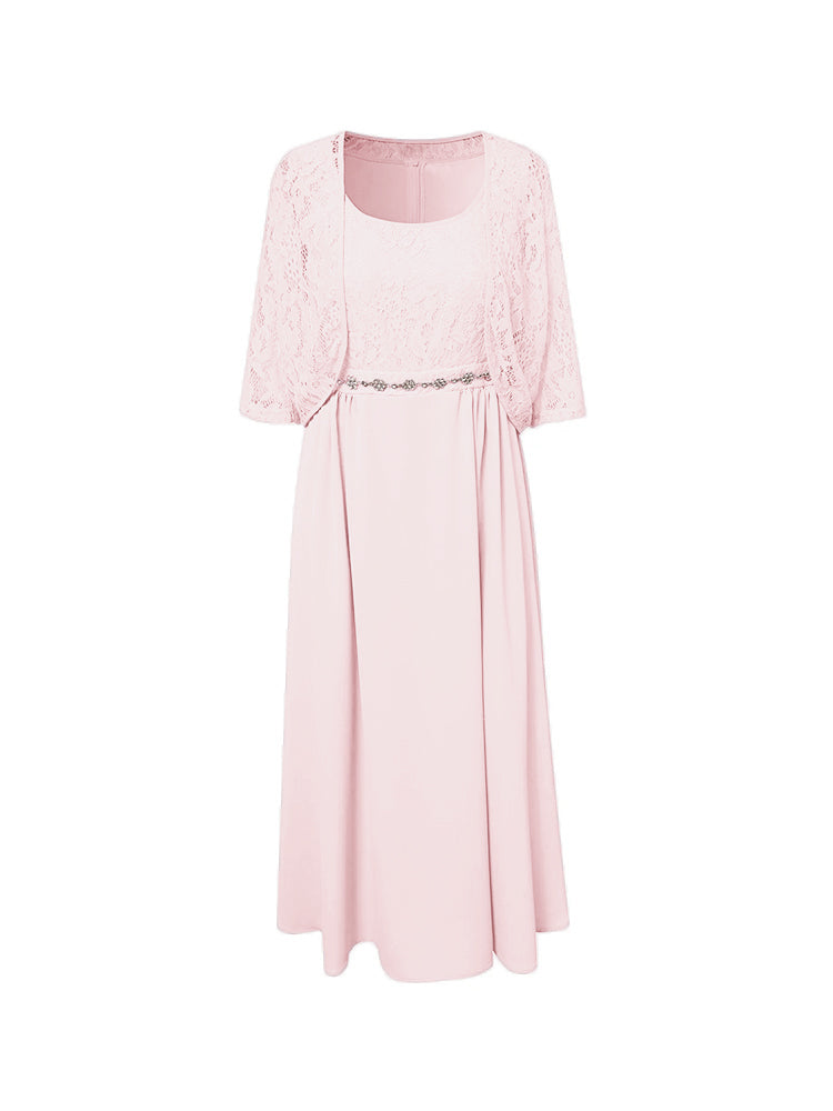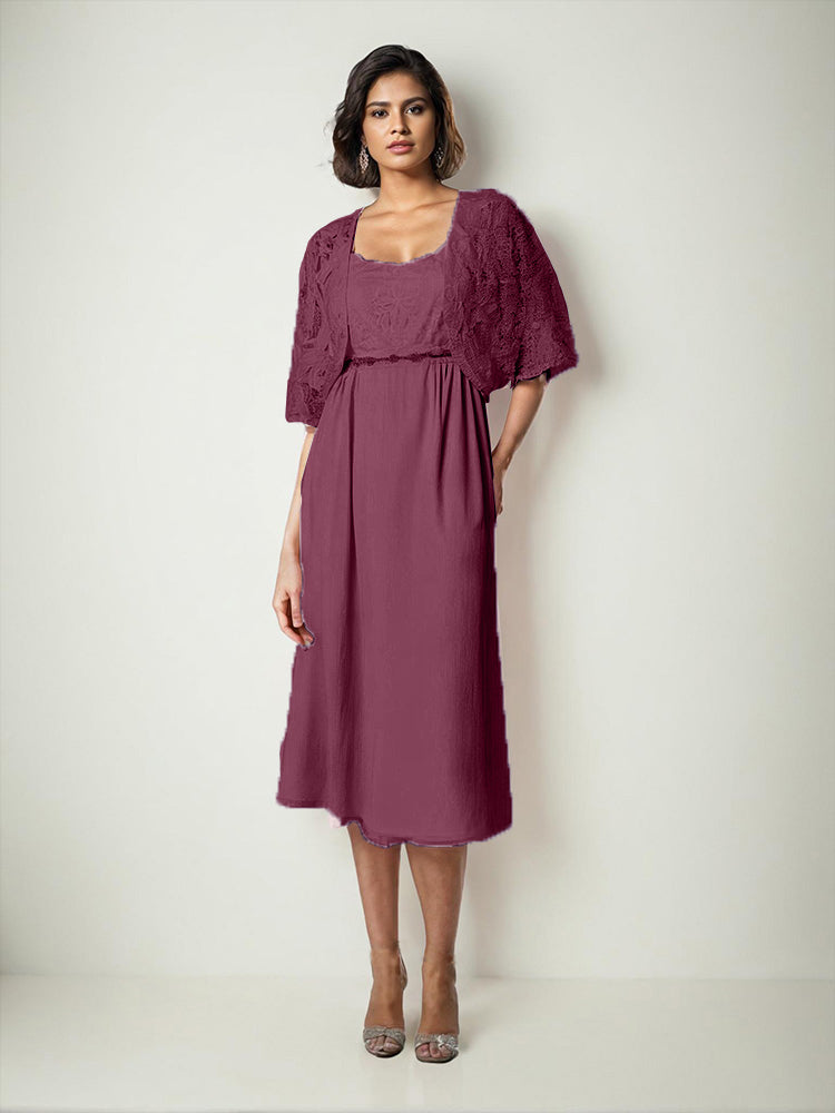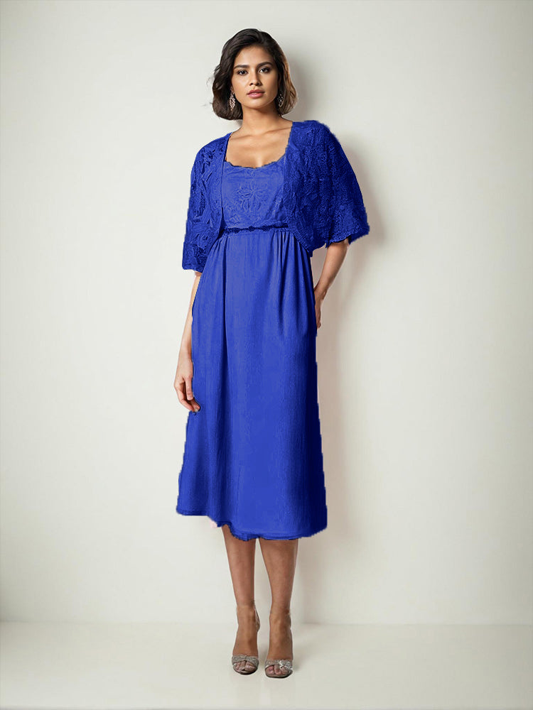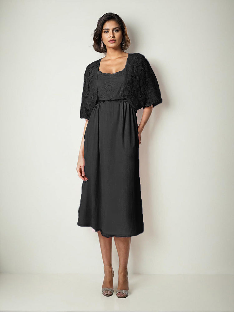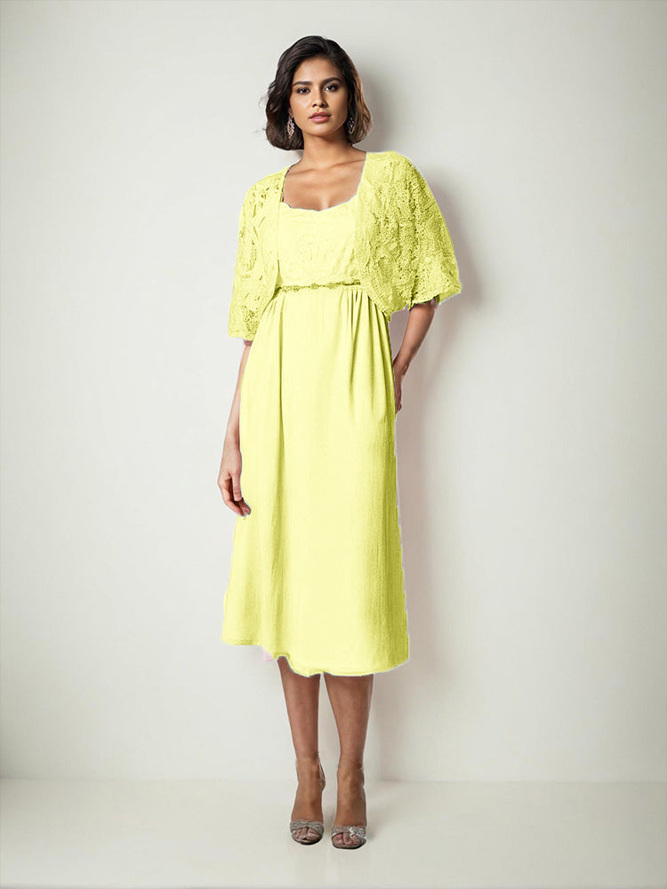 Zwei Stücke Tee Länge Spitze oben Mutter der Braut Kleid Set
