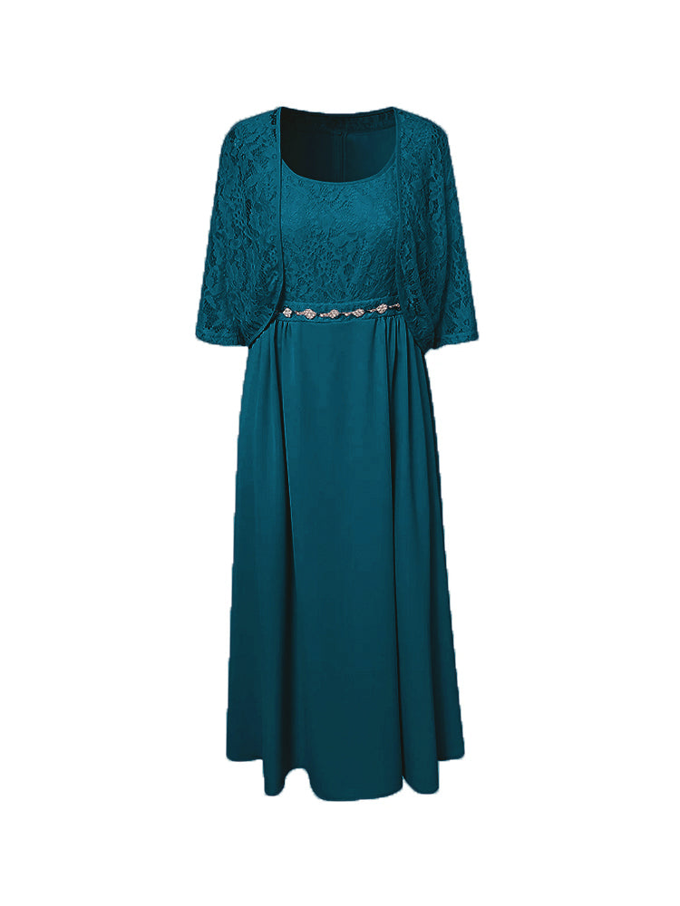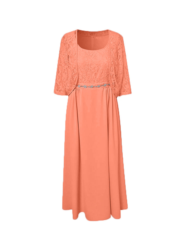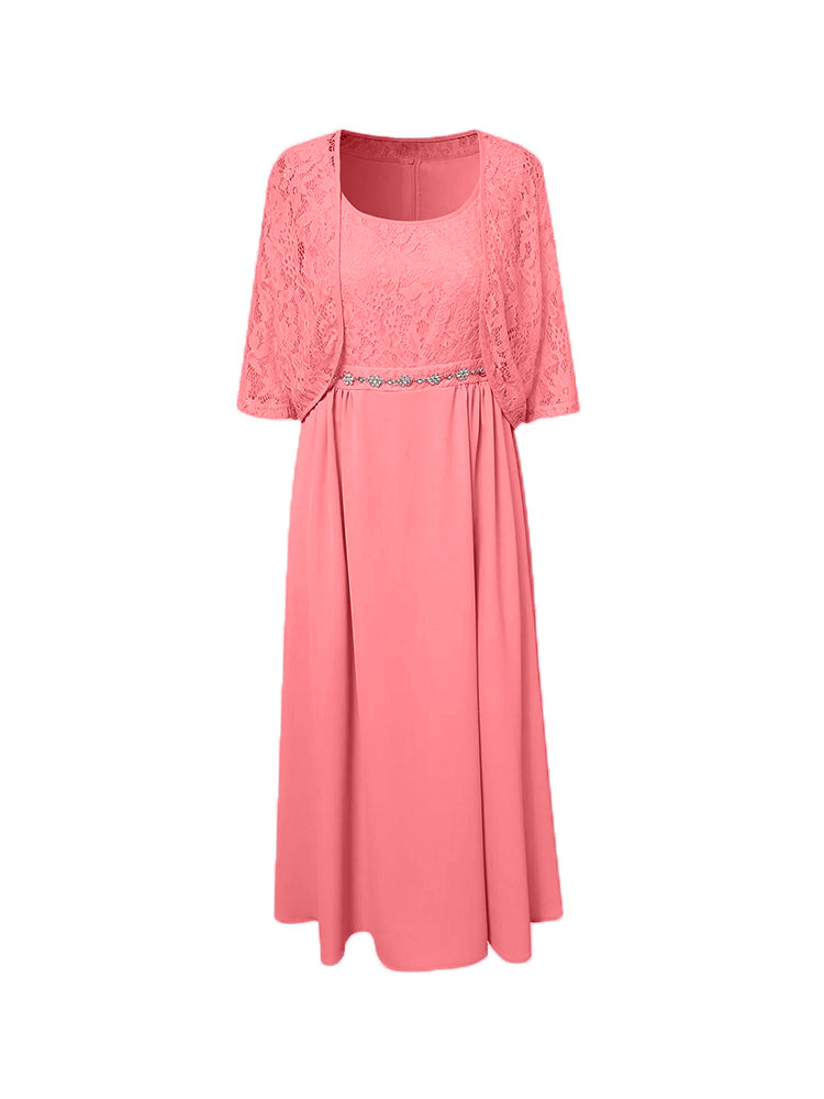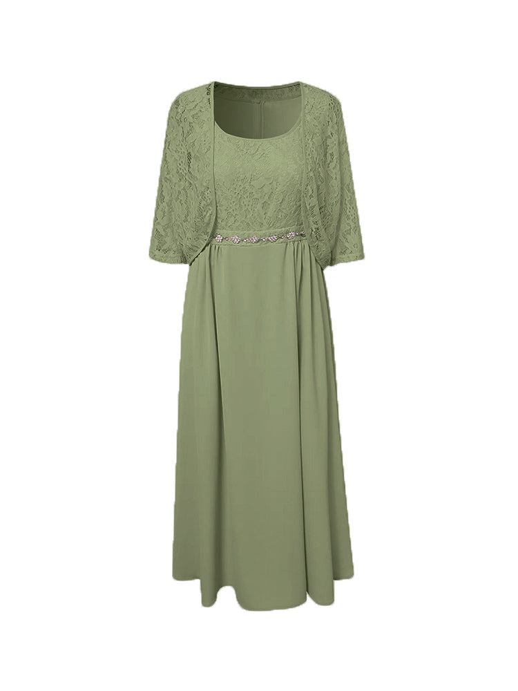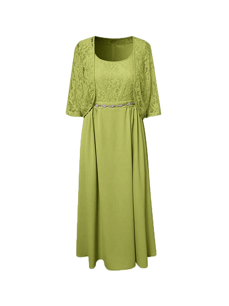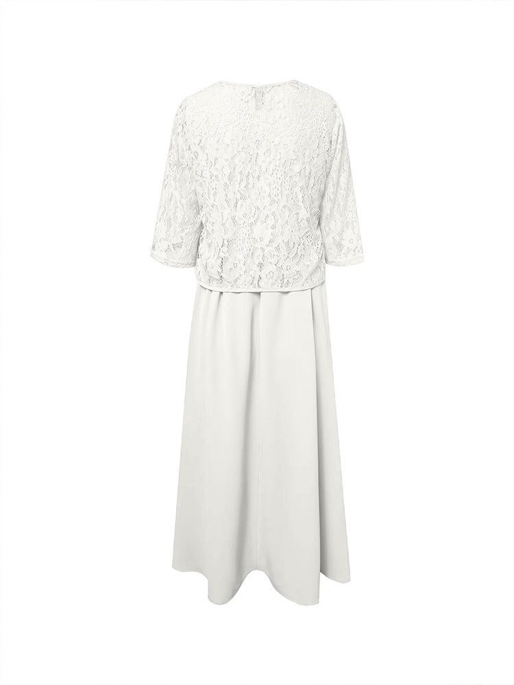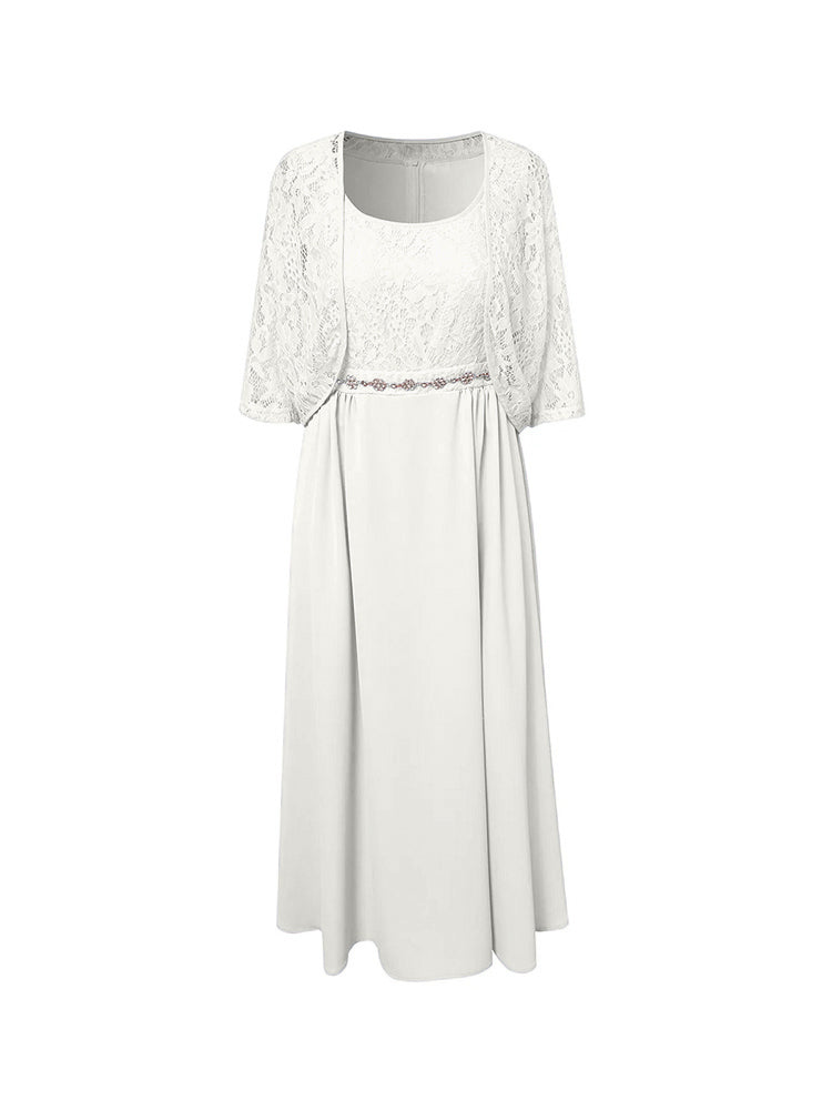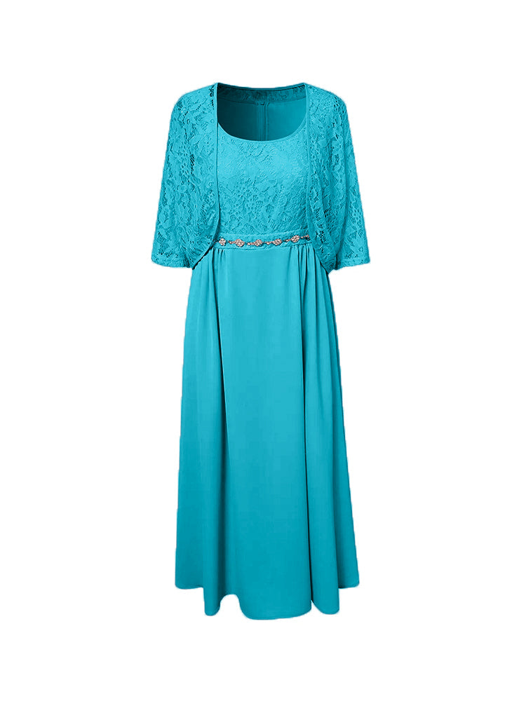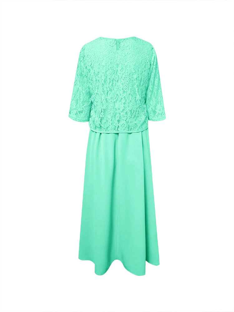 Zwei Stücke Tee Länge Spitze oben Mutter der Braut Kleid Set
