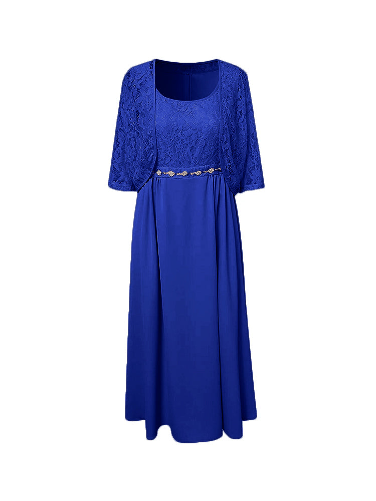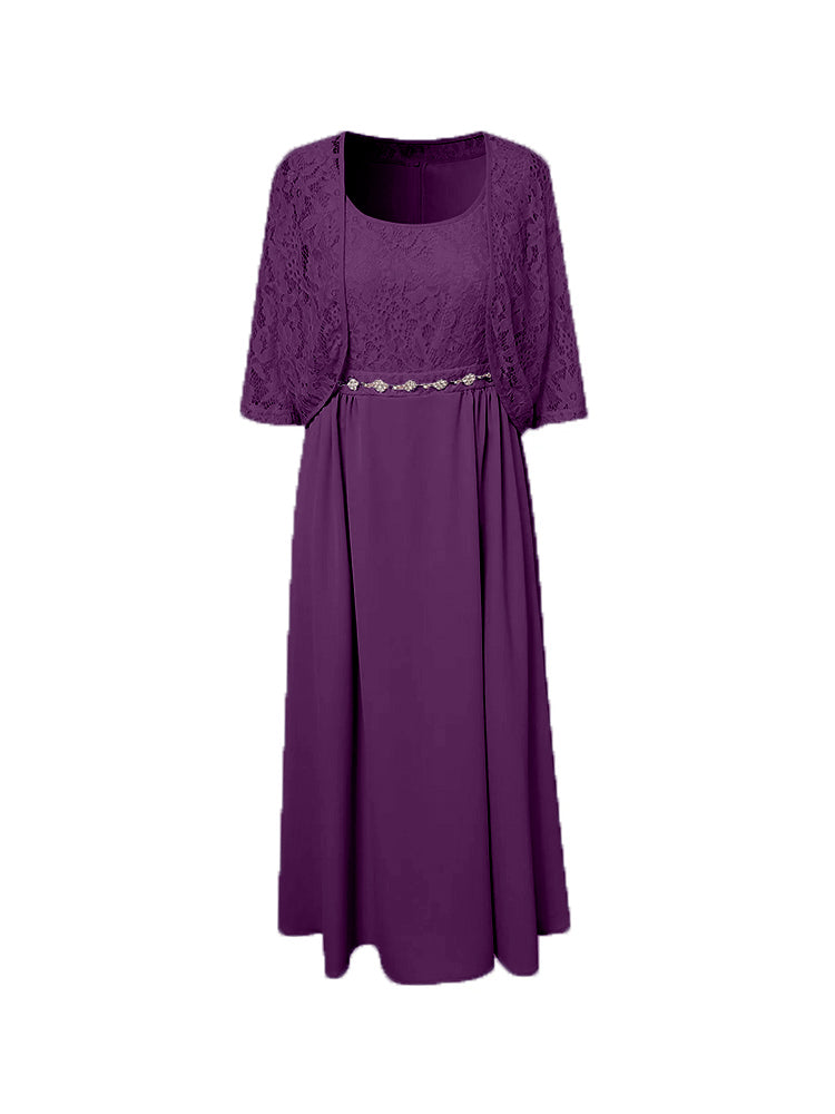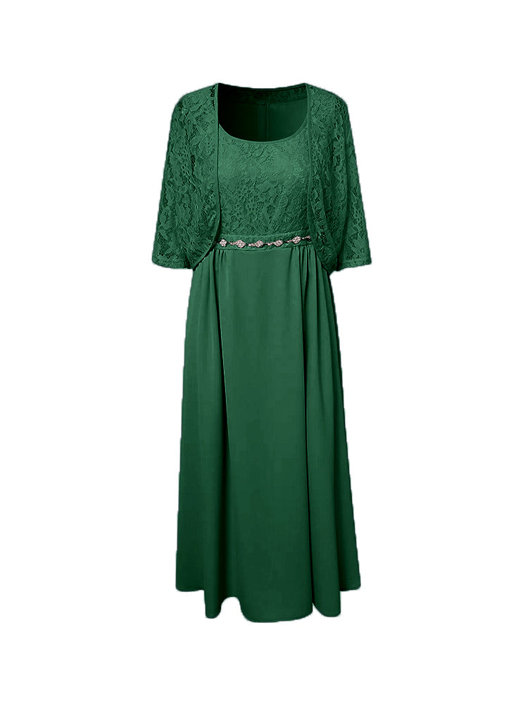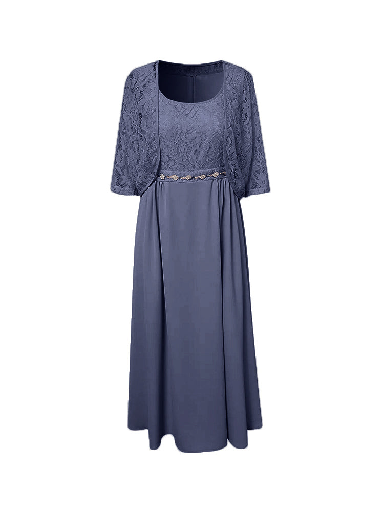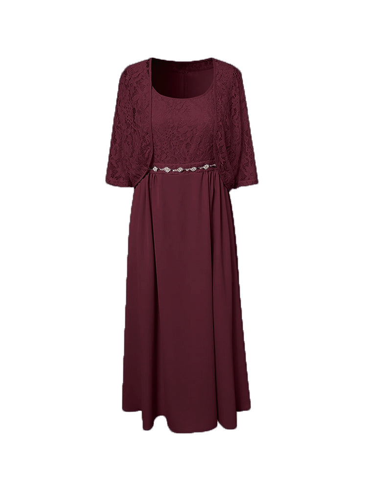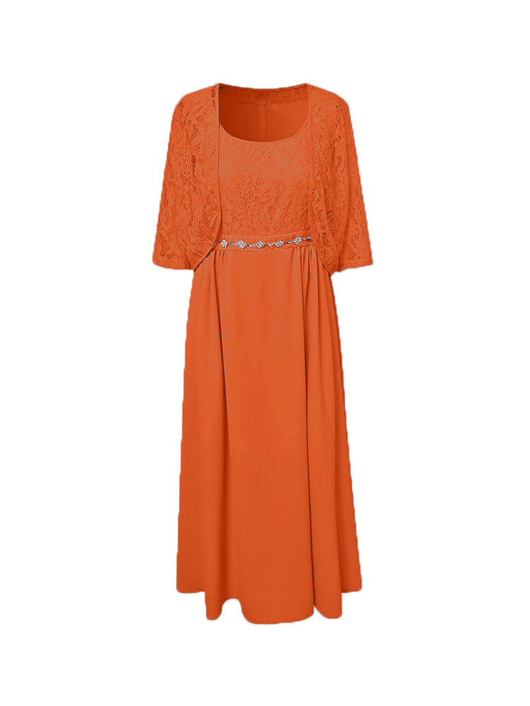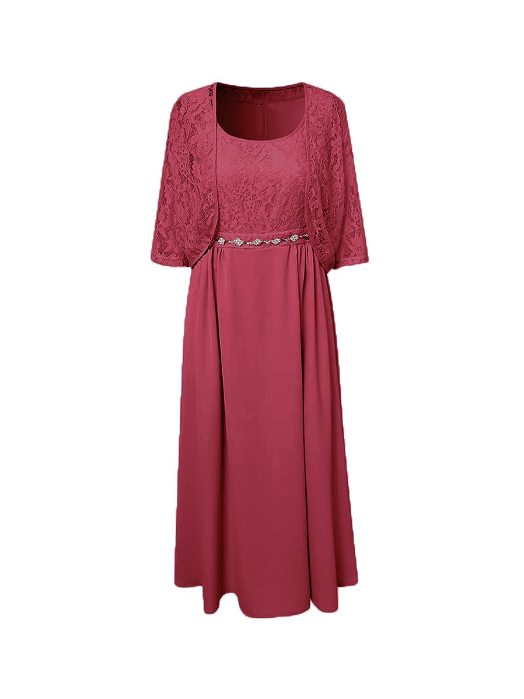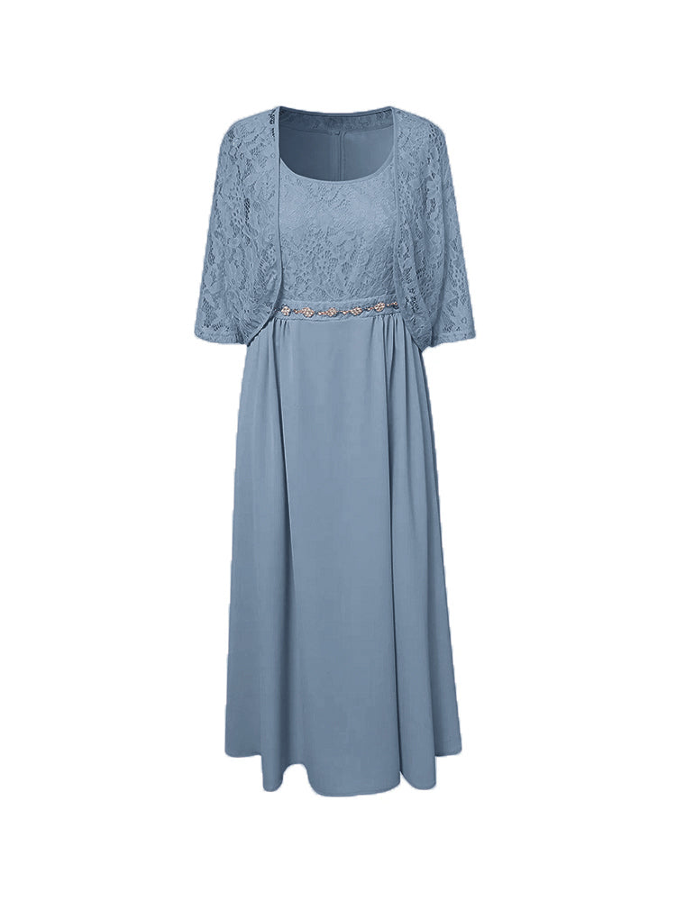Zwei Stücke Tee Länge Spitze oben Mutter der Braut Kleid Set