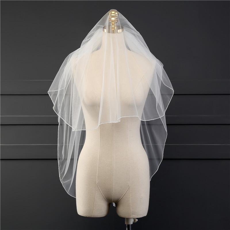 Zweischichtig Gebündelter Rand Tüll Fingerspitze Braut Schleier TS9015