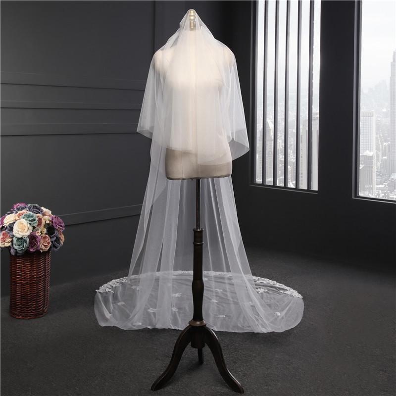 Zweischichtig Spitzensaum Tüll Dom Braut Schleier mit Applikationen TS9008