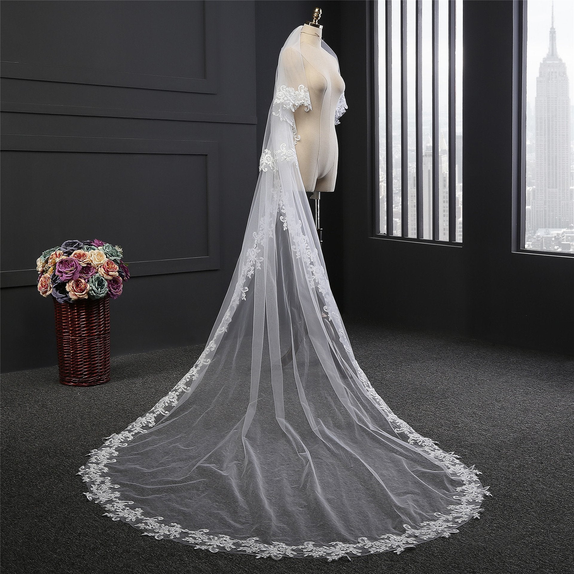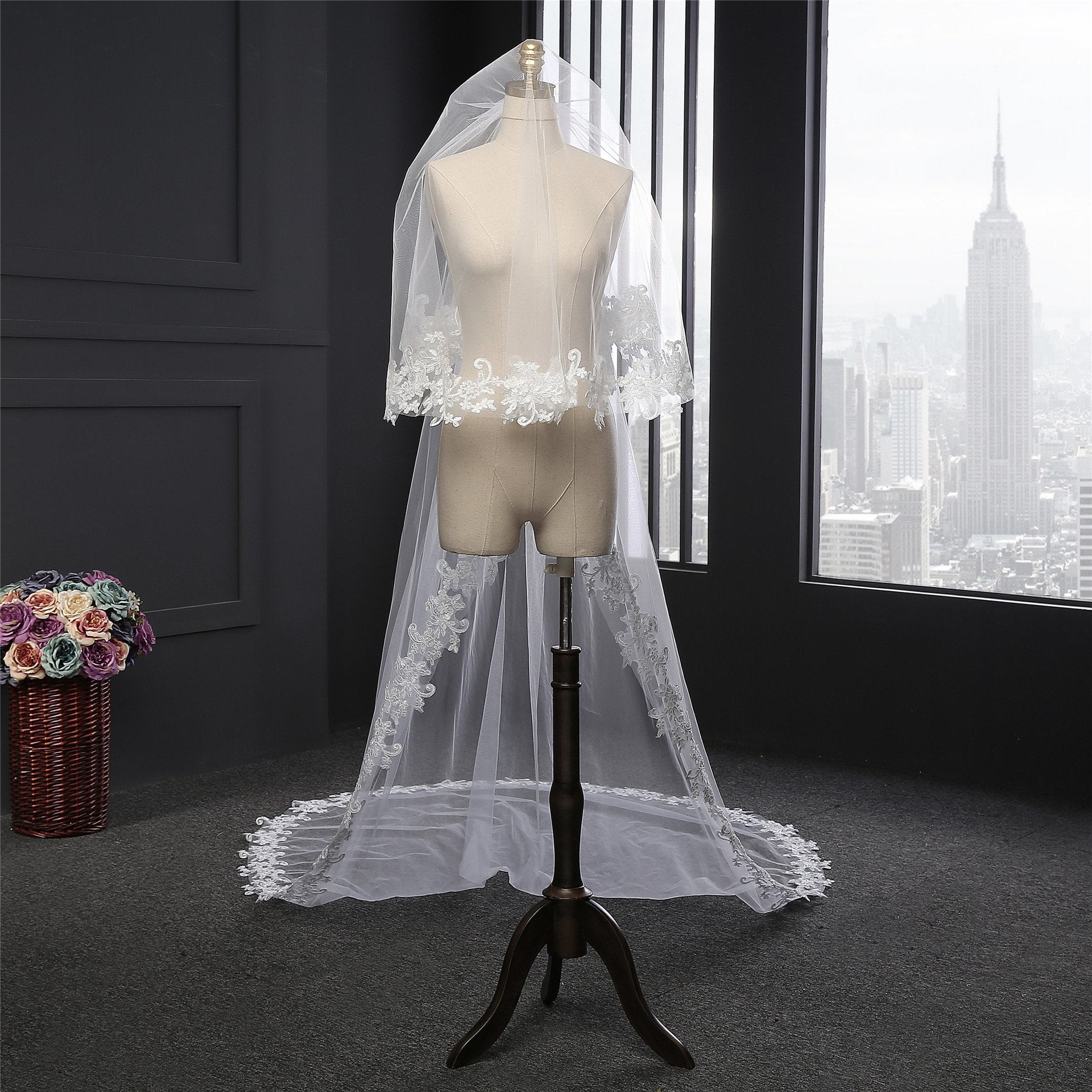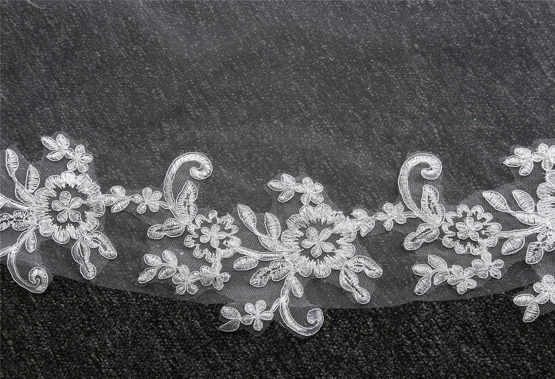 Zweischichtig Spitzensaum Tüll Dom Braut Schleier mit Applikationen TS9014